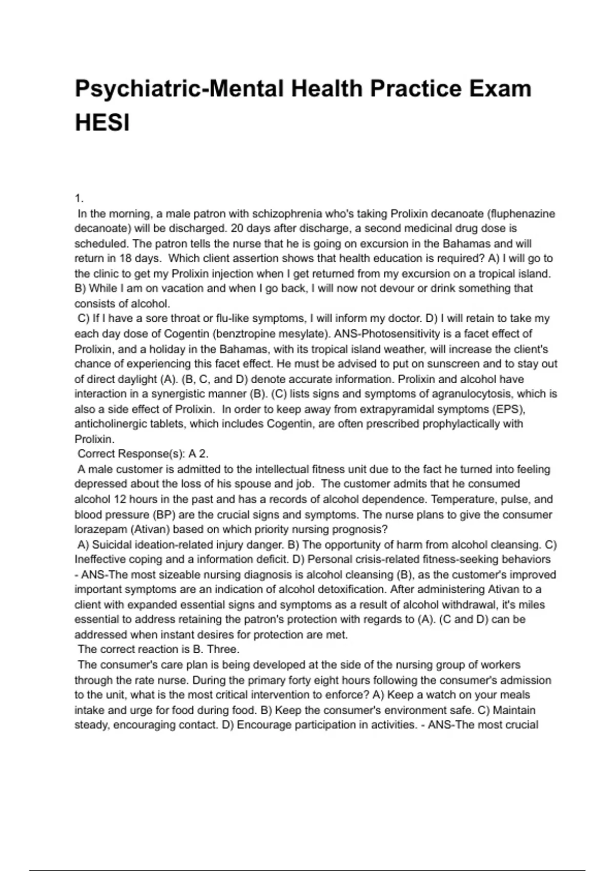 Psychiatric-Mental Health Practice Exam HESI NEWEST 2025/2026 ACTUAL EXAM COMPLETE QUESTIONS AND CORRECT DETAILED ANSWERS (VERIFIED ANSWERS) |ALREADY GRADED A+||BRAND NEW!!