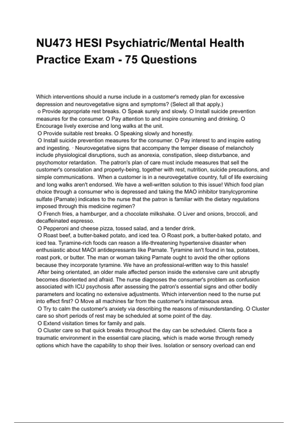 NU473 HESI Psychiatric/Mental Health Practice Exam - 75 Questions NEWEST 2025/2026 ACTUAL EXAM COMPLETE QUESTIONS AND CORRECT DETAILED ANSWERS (VERIFIED ANSWERS) |ALREADY GRADED A+||BRAND NEW!!