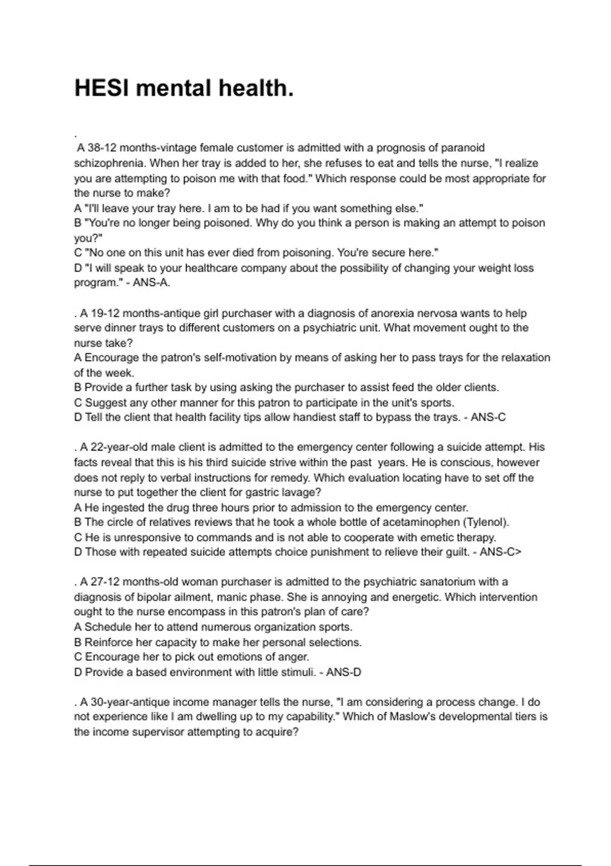 . A seventy two-12 months-antique lady consumer is admitted to the psychiatric unit with a
