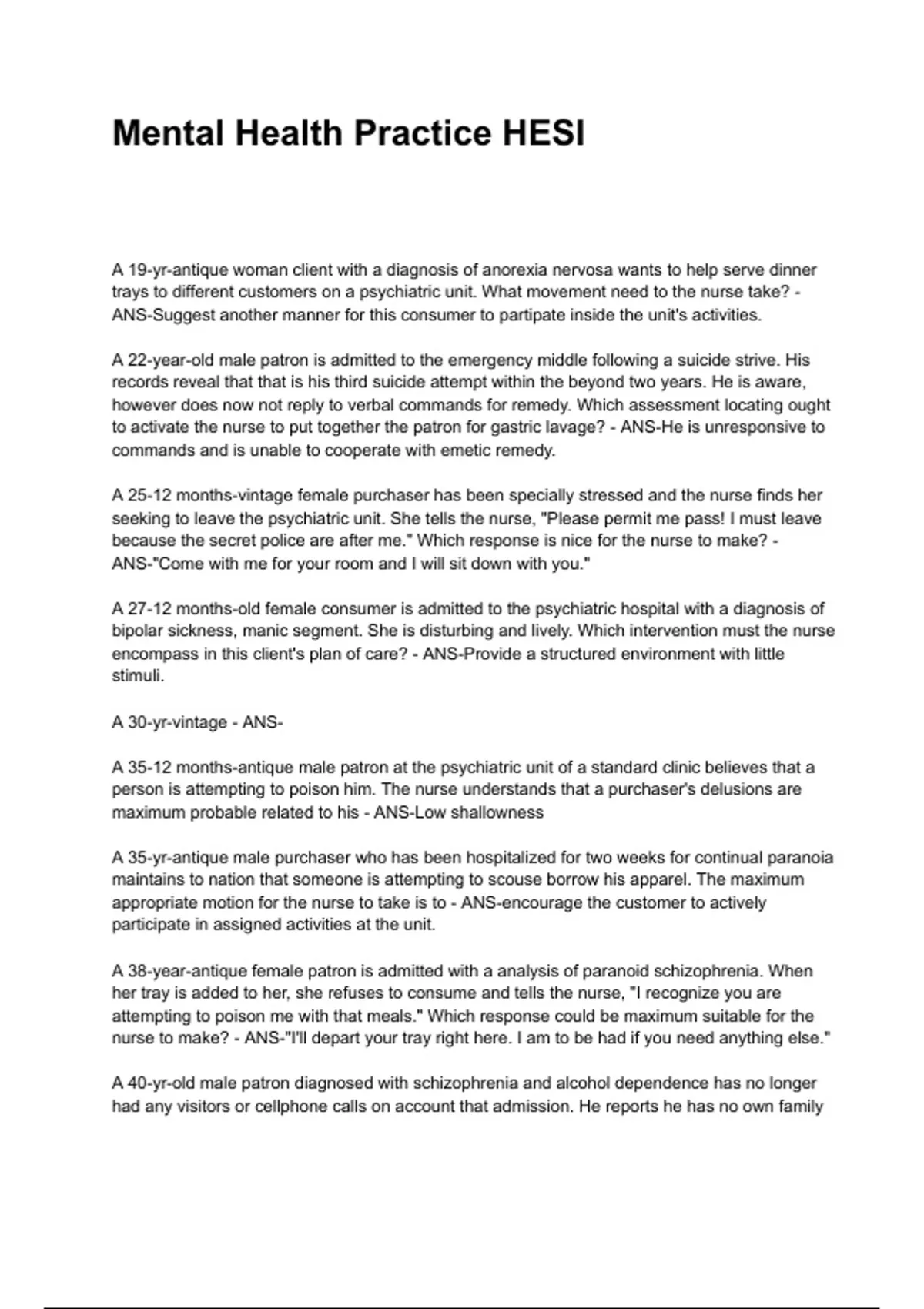 Mental Health Practice HESI NEWEST 2025/2026 ACTUAL EXAM COMPLETE QUESTIONS AND CORRECT DETAILED ANSWERS (VERIFIED ANSWERS) |ALREADY GRADED A+||BRAND NEW!!