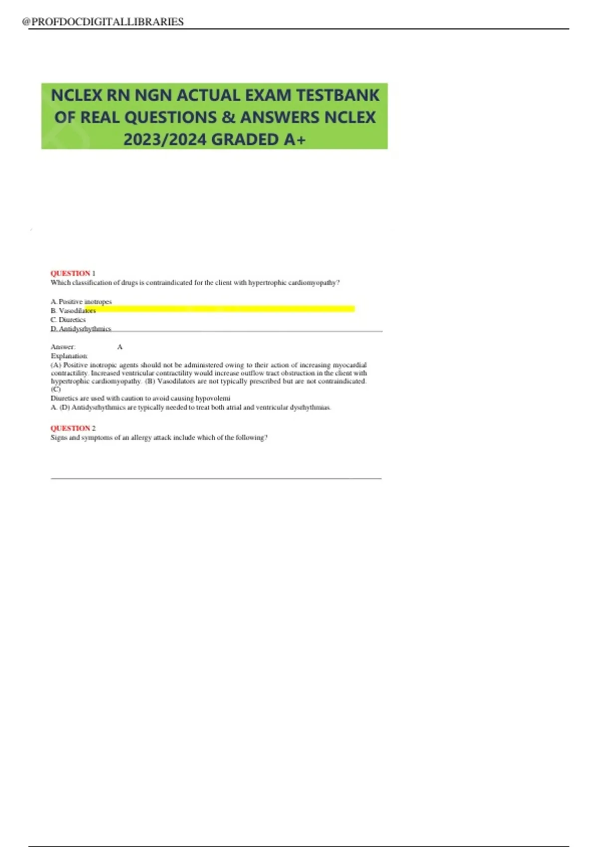 NCLEX RN NGN ACTUAL EXAM TESTBANK OF REAL QUESTIONS & ANSWERS NCLEX 2023/2024 GRADED A+