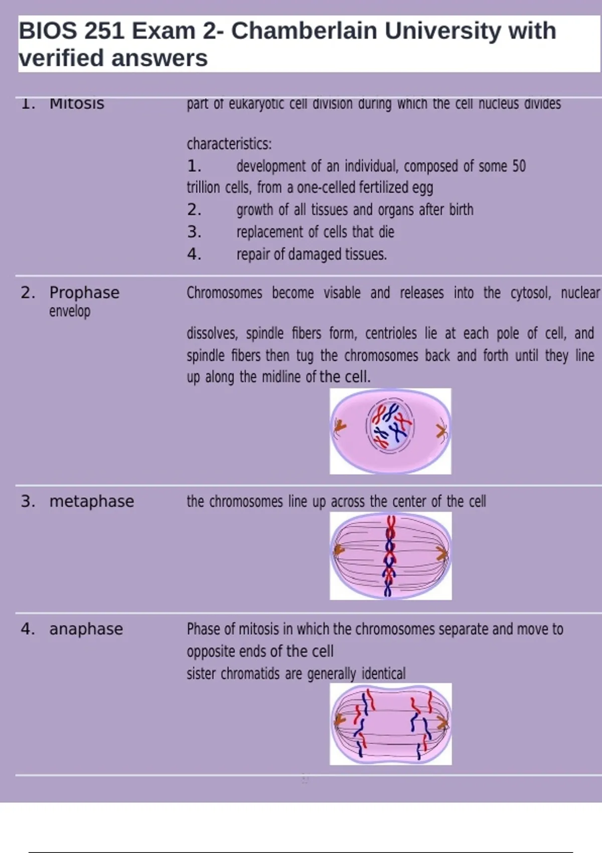 , BIOS 251 Exam 2- Chamberlain