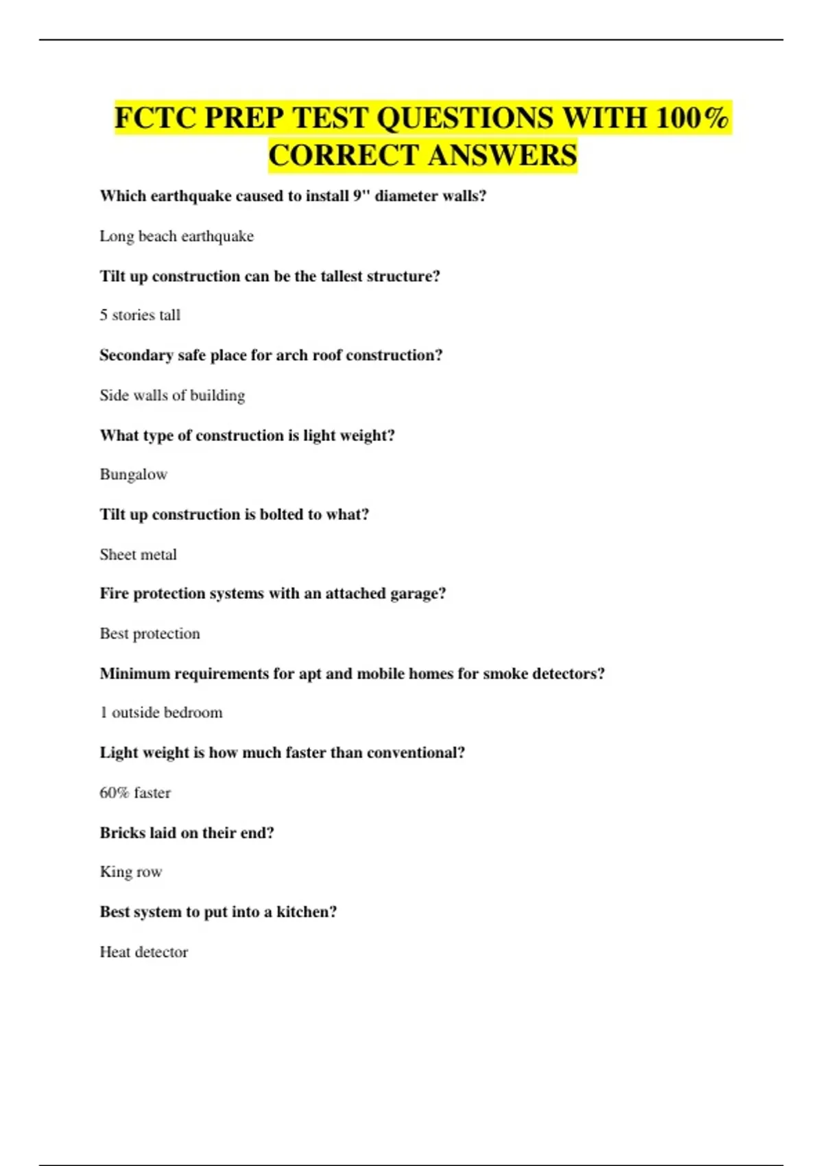 FCTC PREP TEST QUESTIONS WITH 100% CORRECT ANSWERS