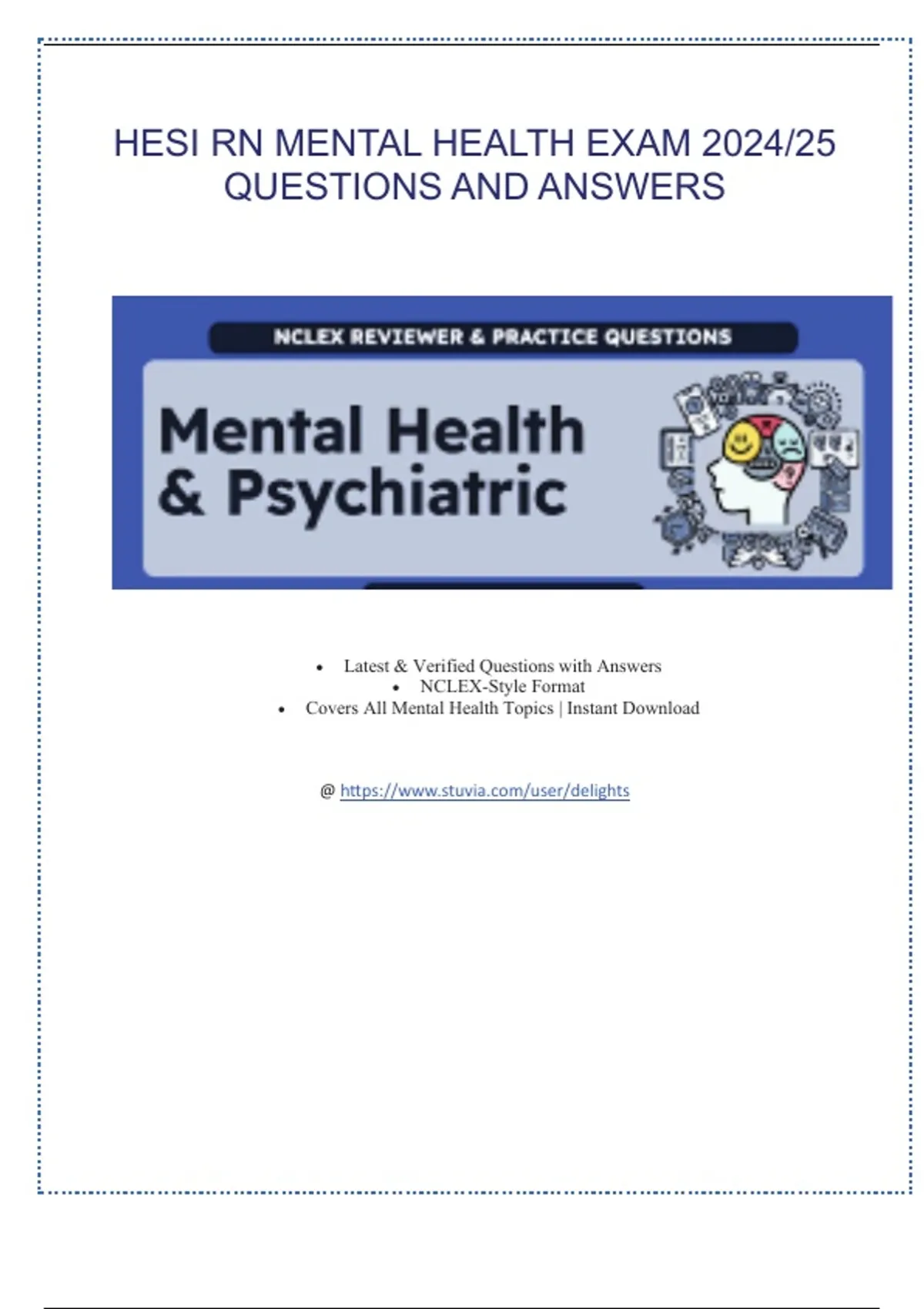 ,HESI RN Mental Health EXAM 2024-2025 QUESTIONS and ANSWERS