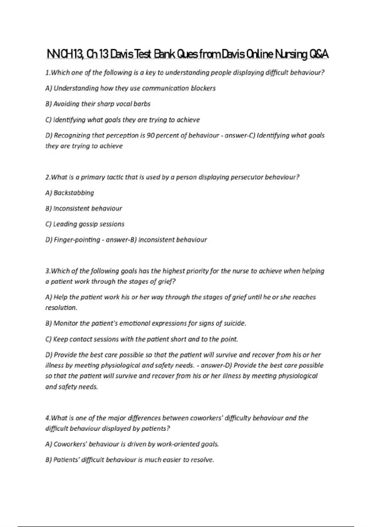 ATI CRITICAL THINKING GUIDE Q&A Maslow's Hierarchy of Needs - answer-Physiological, safety and security, love and belonging, self-esteem, and self-actualization. In theory, the highest priority needs are those necessary for survival and make up the foundation of the triangle. While this is usually the case, higher levels of the pyramid may compete with those at the foundation depending on the specific client situation. Nursing process - answer-Is a problem solving process you can use to diagnose and treat the response of clients to actual and potential alterations in health. The nursing process consists of four or five consecutive steps. - answer-Assessment Data collection Analysis (when used by RNs) Planning Implementation Evaluation. The first steps of the nursing process take priority over the latter steps - for example: assessment/data collection takes priority over other steps of the nursing process because you must obtain all necessary data and information before being able to make a decision regarding what nursing action is appropriate to take. ABC - answer-Assessment of a client's airway, breathing, and circulation, in that order, is the priority in regard to how the initial assessment of a client should be done. This practice is often referred to assessing a client's "ABCs". Since airway, breathing, and circulation are critical for survival, an alteration in one of these areas could indicate a threat to life or a need for resuscitation. Safety and risk reduction priority-setting framework - answer-Assigns priority to the factor or situation that poses the greatest safety risk to the client. Assigns priority to the factor or situation that poses the greatest risk to the client's physical and or psychological well-being. When a client is facing several risks, the one that poses the