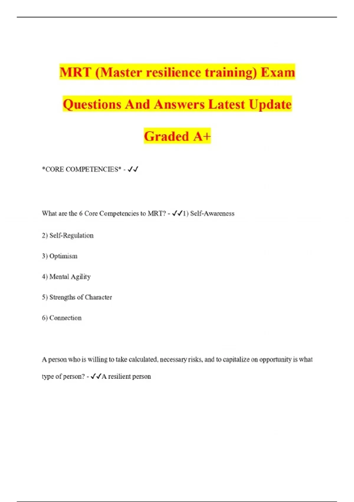 MRT (Master resilience training) Exam Questions And Answers Latest Update Graded A+