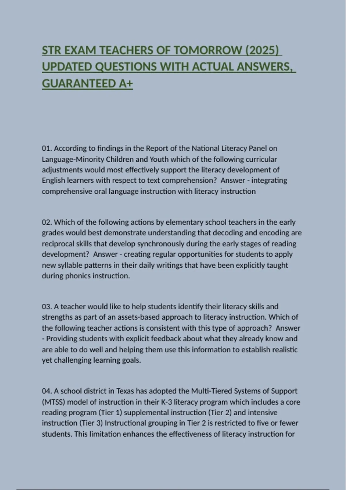 STR EXAM TEACHERS OF TOMORROW (2025) UPDATED QUESTIONS WITH ACTUAL ANSWERS, GUARANTEED A+