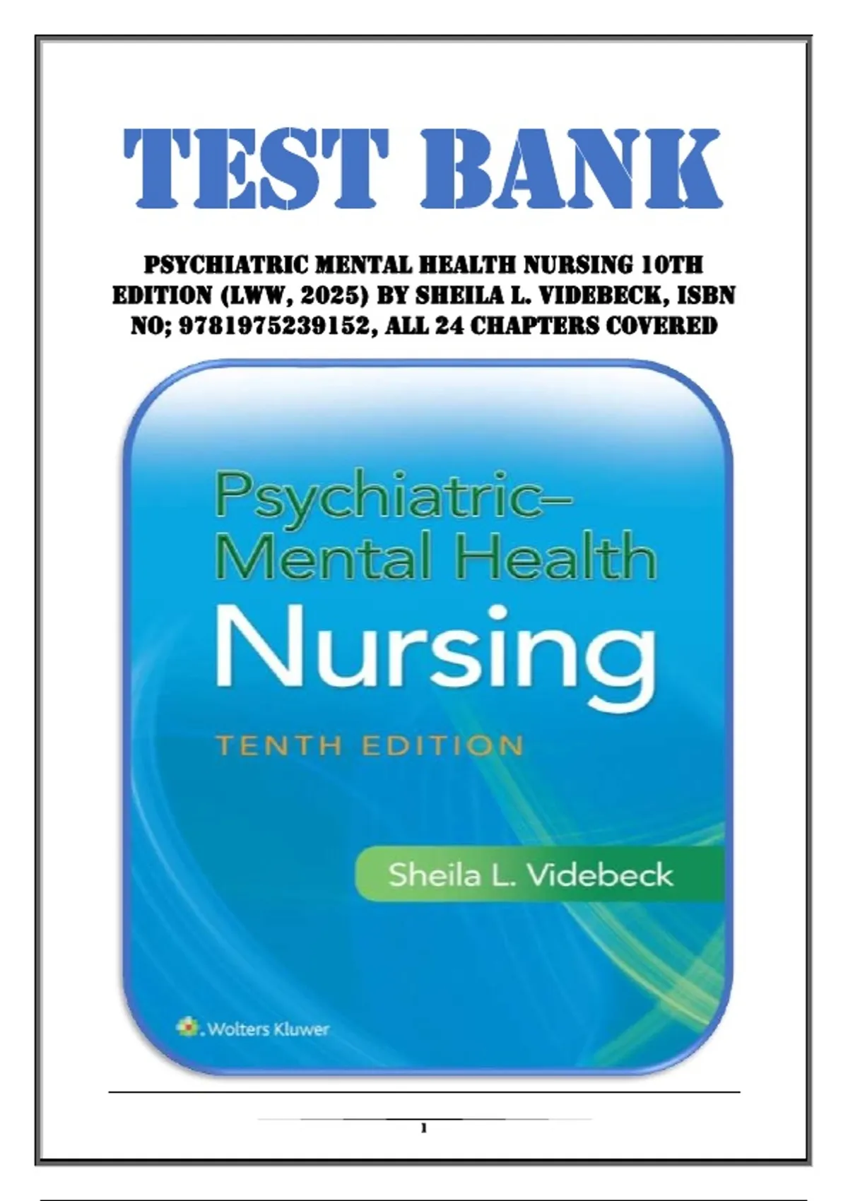 Sheila L. Videbeck, Isbn no; 9781975239152, all 24 Chapters Covered
