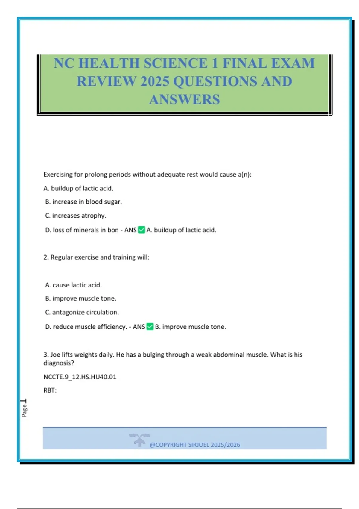 D. loss of minerals in bon - ANS A. buildup of lactic acid.