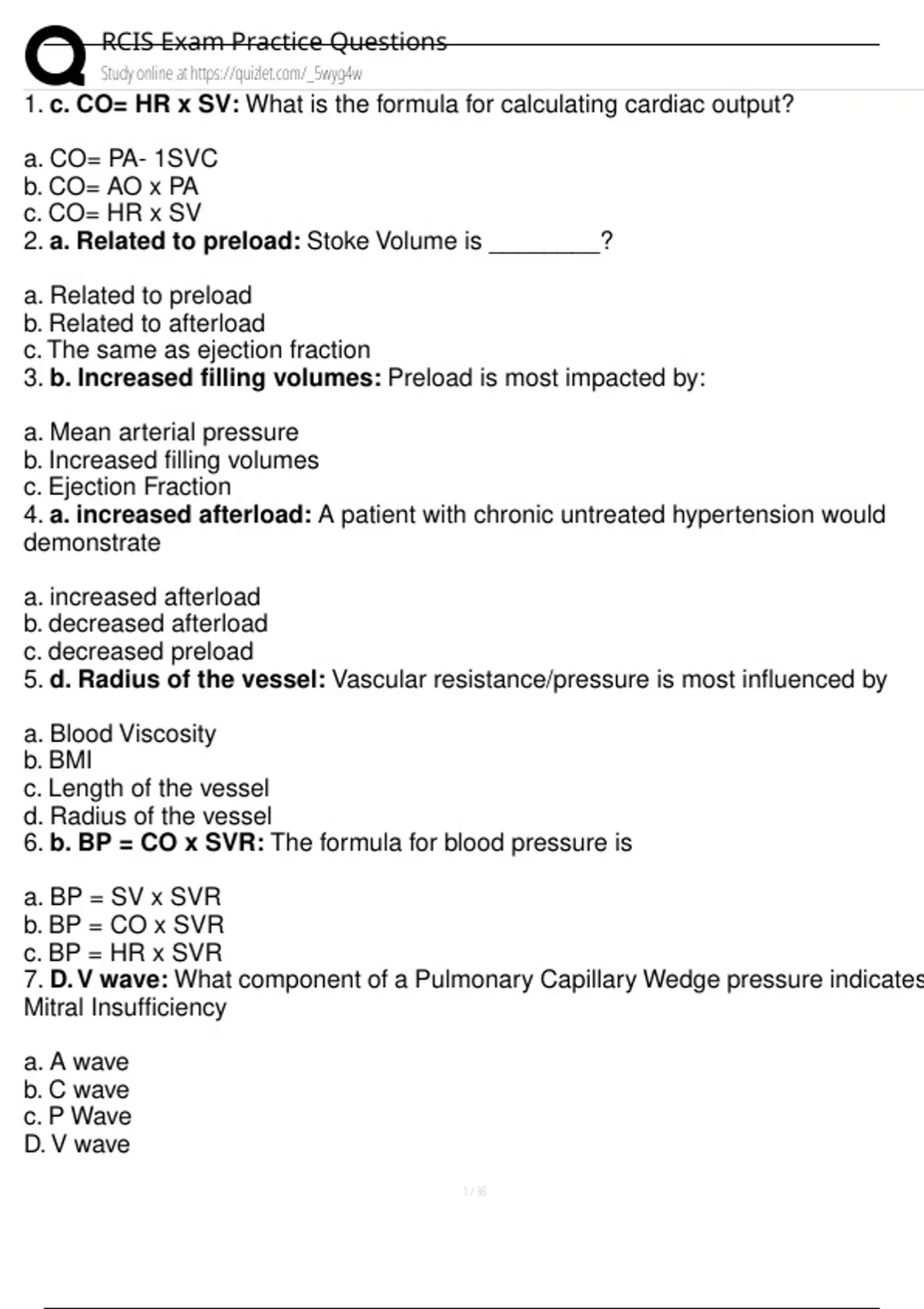1. c. CO= HR x SV: What is the formula for calculating cardiac output?
