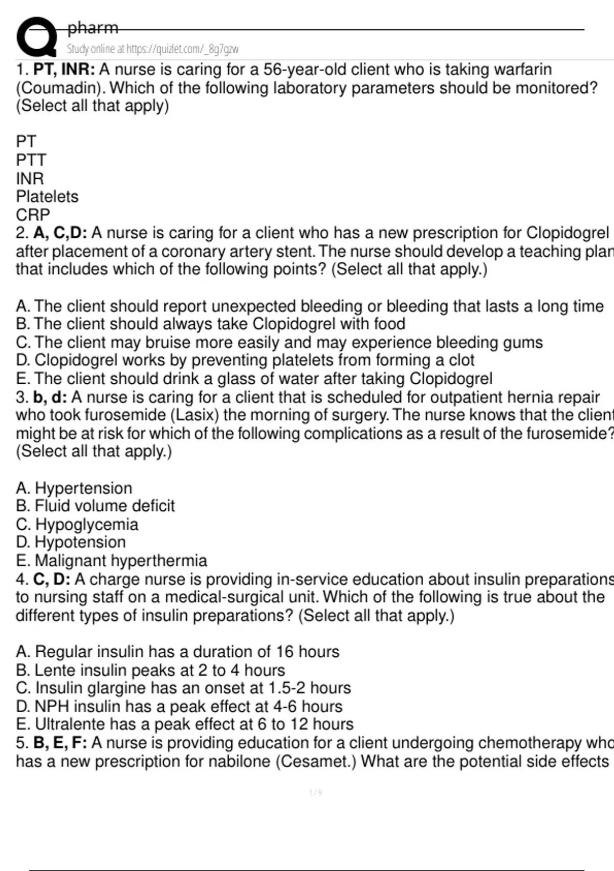 1. PT, INR: A nurse is caring for a 56-year-old client who is taking warfarin
