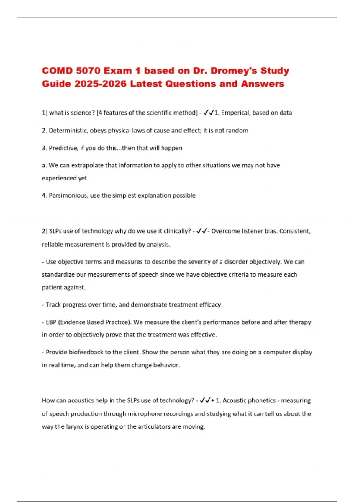 COMD 5070 Exam 1 based on Dr. Dromey's Study Guide Latest Questions and Answers