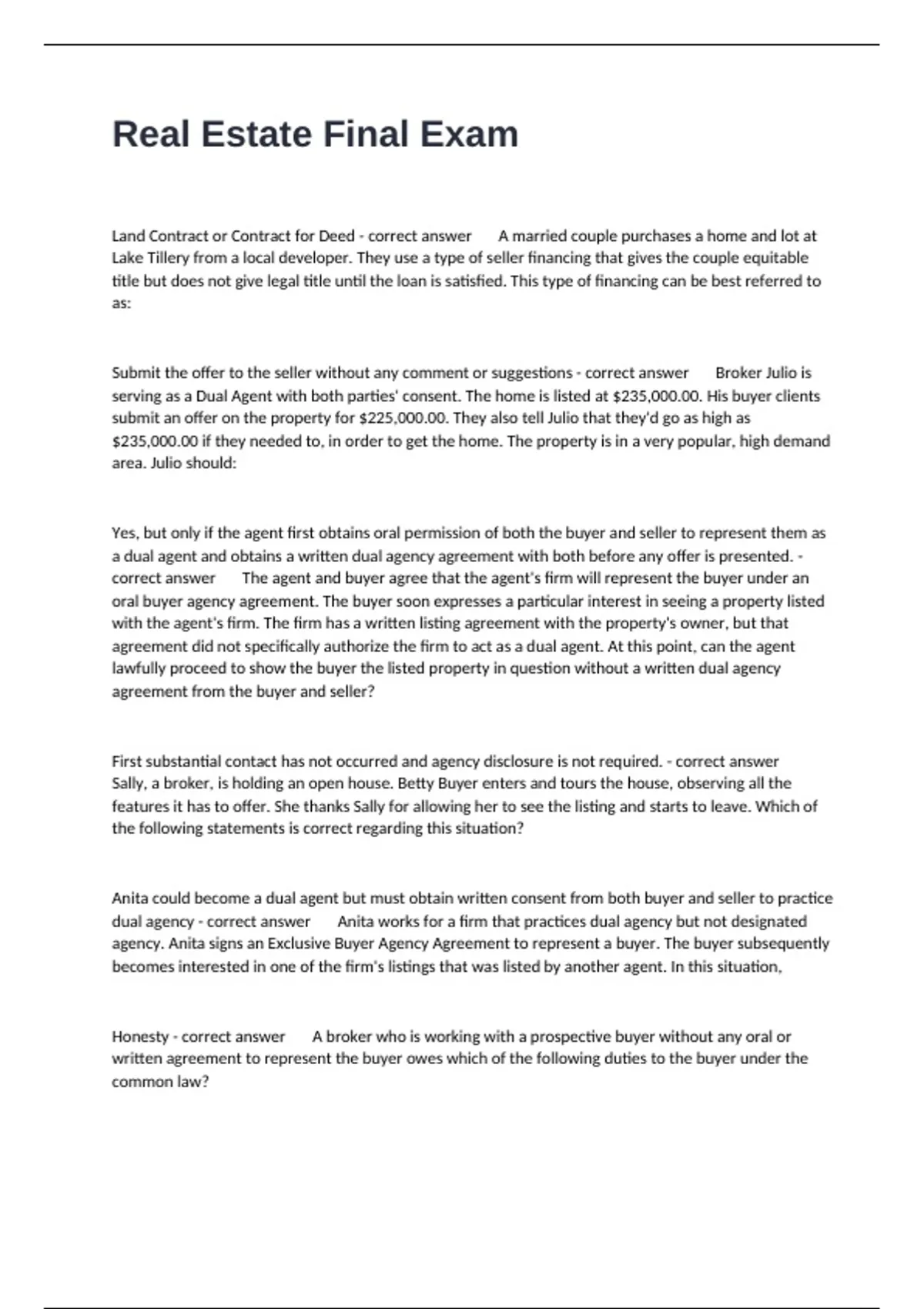 Land Contract or Contract for Deed - correct answer A married couple purchases a home and lot at