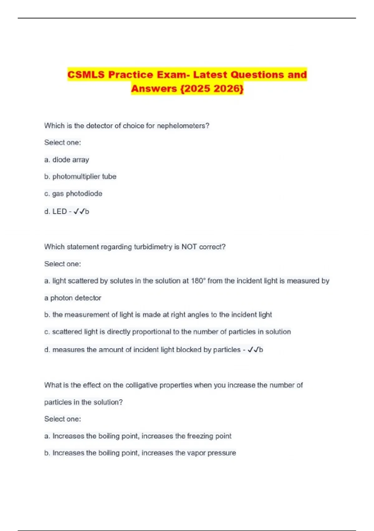 CSMLS Practice Exam- Latest Questions and Answers {}