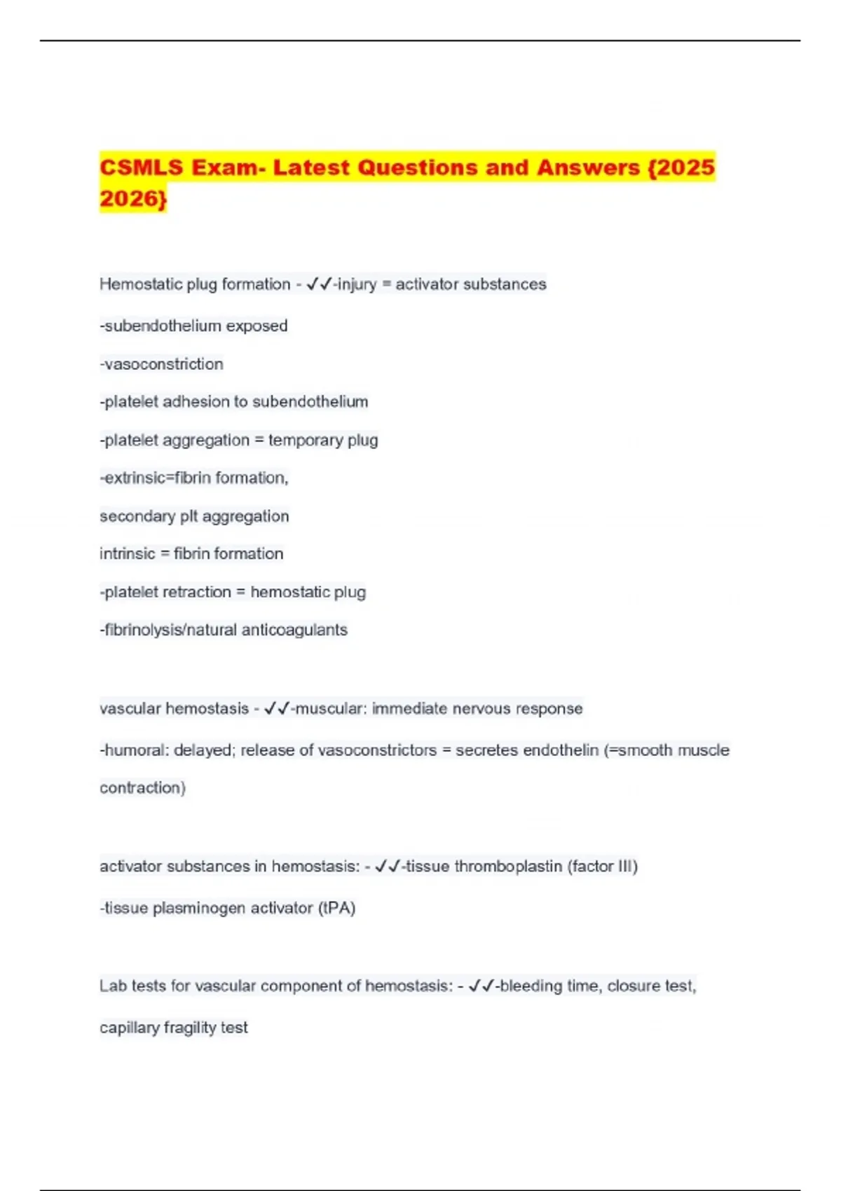 CSMLS Exam- Latest Questions and Answers {}