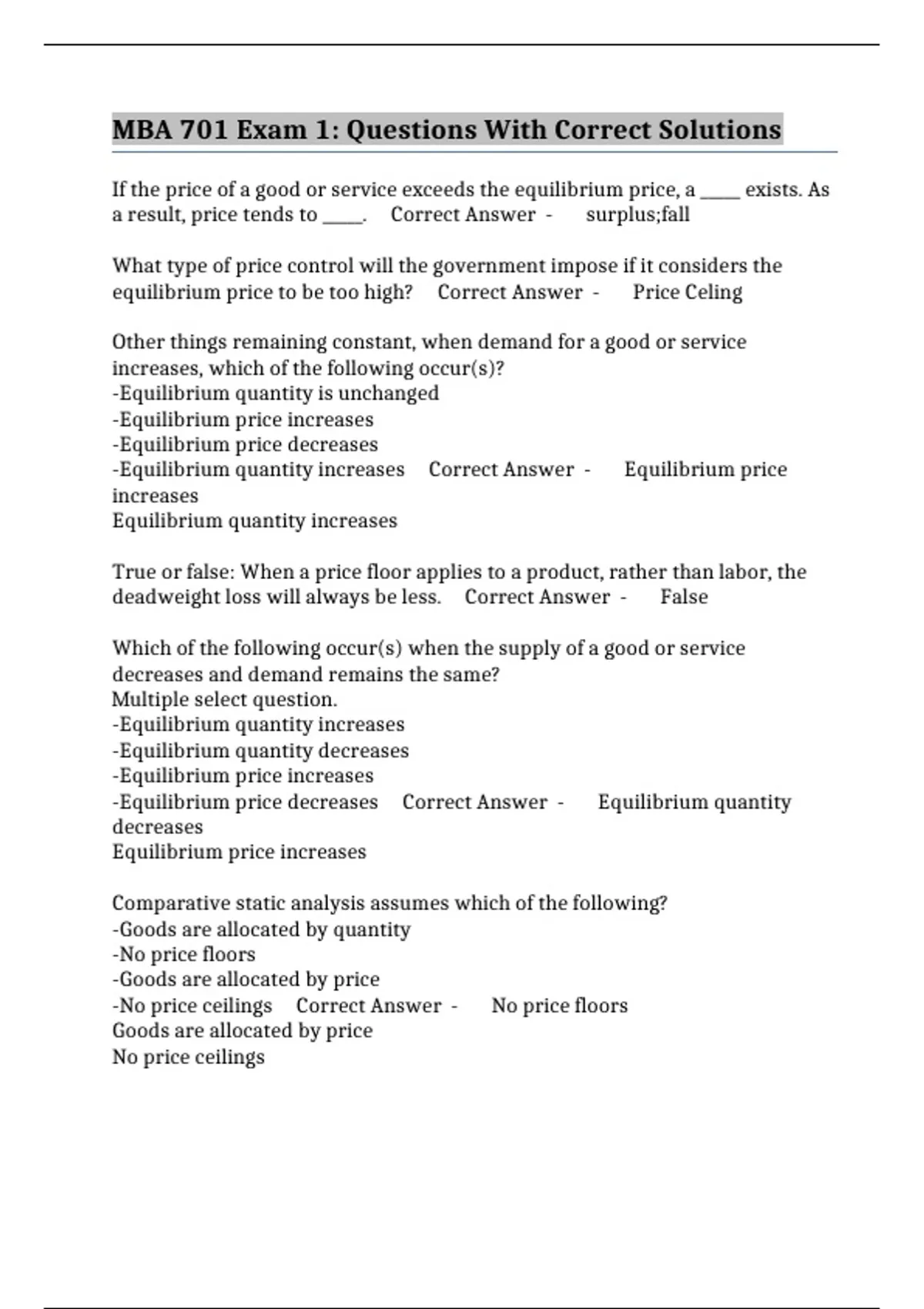 As a result, the price tends to _____. Correct Answer - shortage; rise
