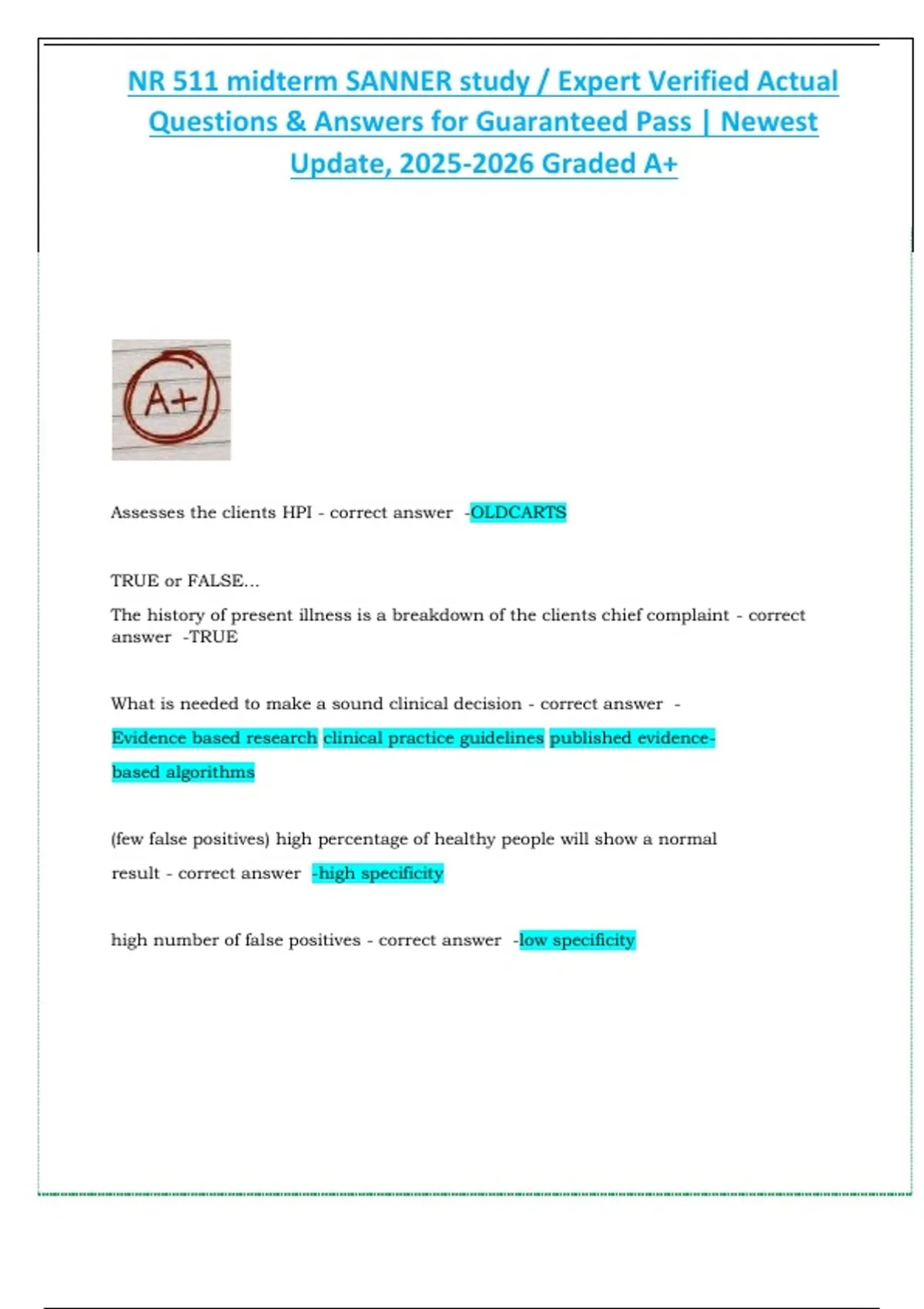 , NR 511 midterm SANNER study / Expert Verified Actual