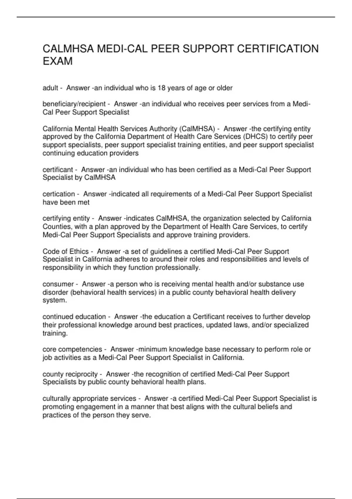 CALMHSA MEDI-CAL PEER SUPPORT CERTIFICATION EXAM