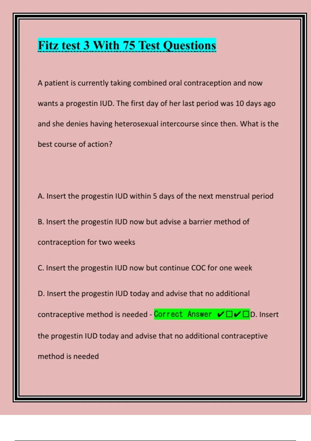 contraceptive method is needed - Correct Answer ✔️✔️D. Insert