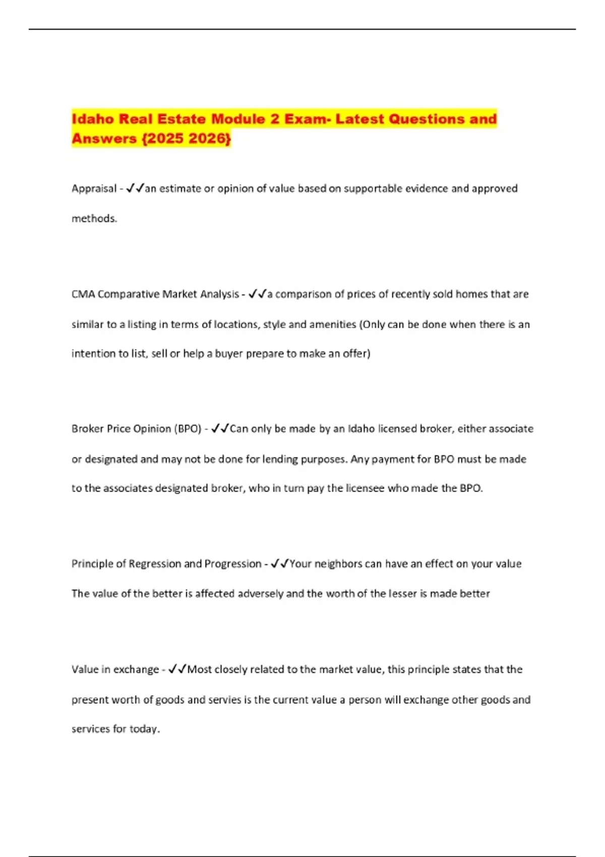 Idaho Real Estate Module 2 Exam- Latest Questions and Answers {}