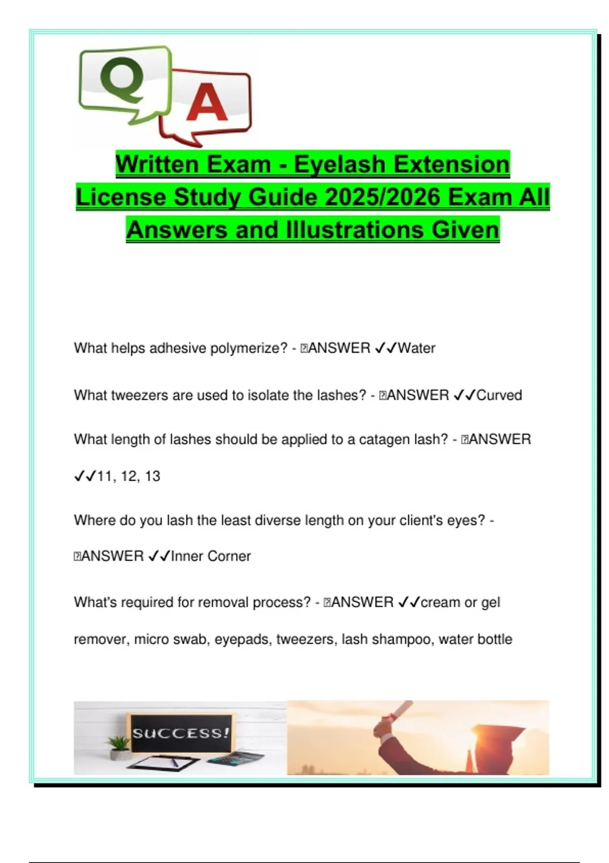 Written Exam - Eyelash Extension License Study Guide 2025/2026 Exam All Answers and Illustrations Given