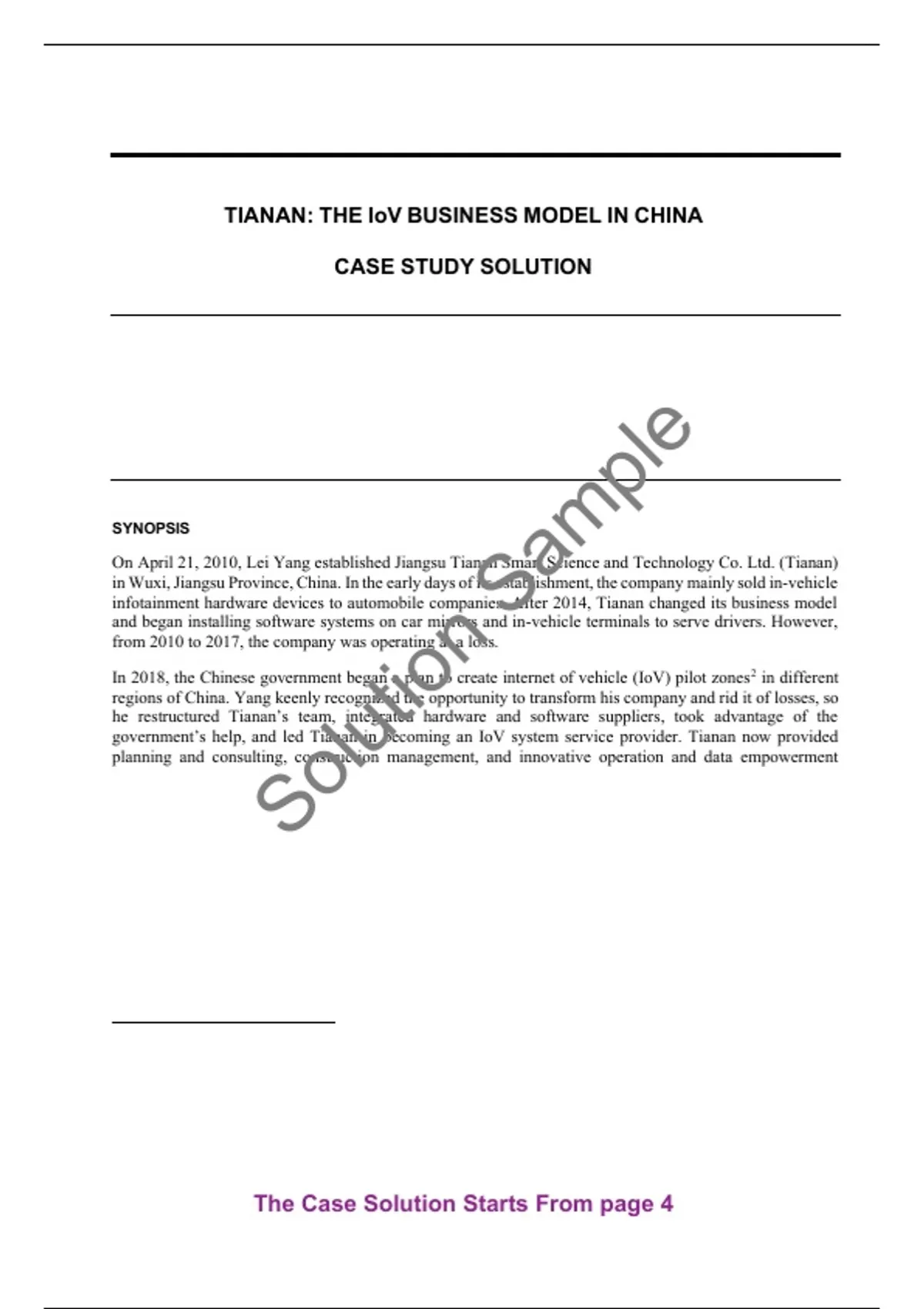 Get the Tianan The IoV Business Model in China Case Study Solution and Analysis by Shaojie Han, Jiaojiao Liu, Xiangan Ding, Li Li | Case ID: W34801. We guarantee that this case solution is 100% original, official, and not AI-generated. It is a plagiarism-free, complete, and well-structured solution, perfect for exam preparation, assignments, and research.