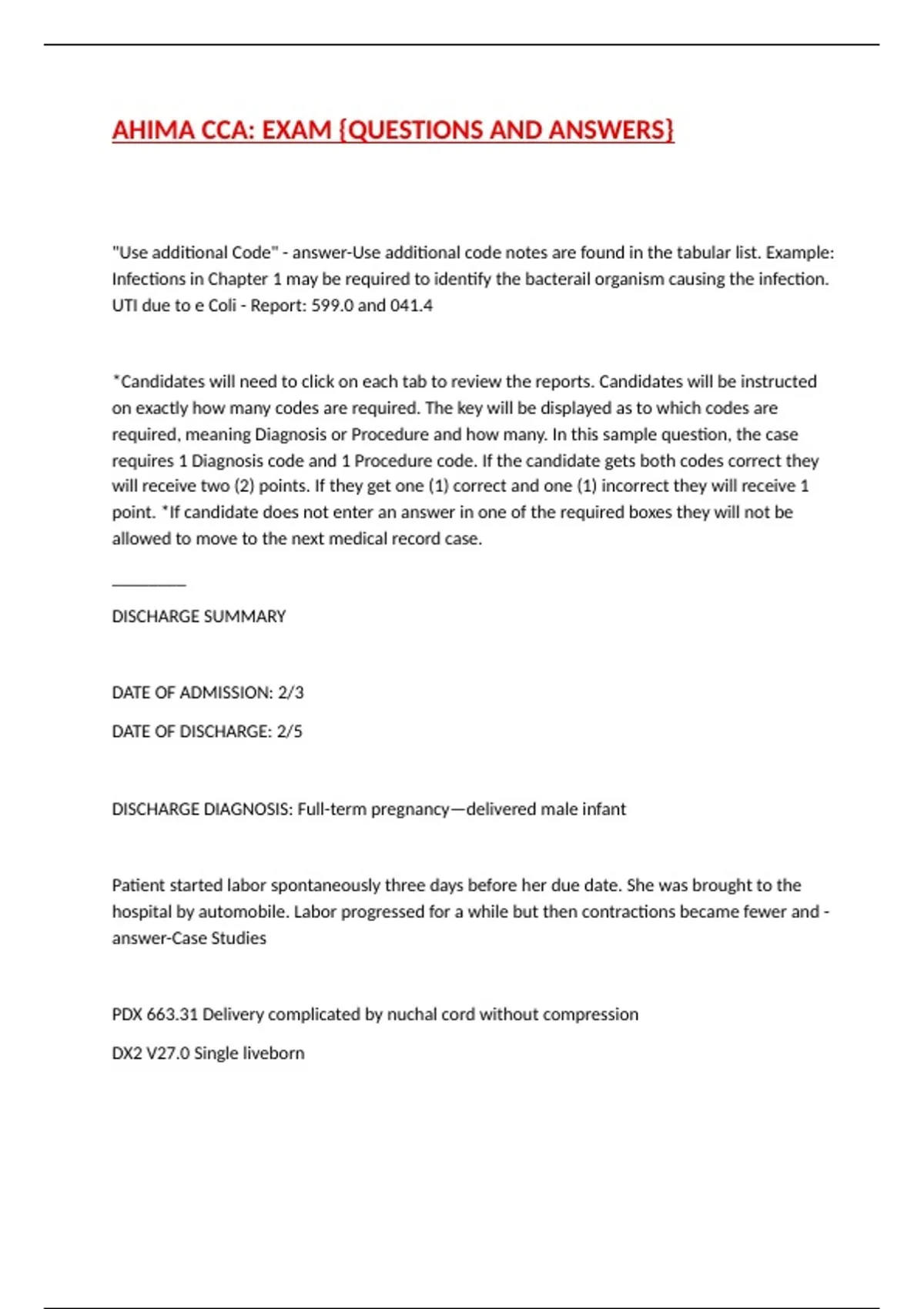 required, meaning Diagnosis or Procedure and how many. In this sample question, the case
