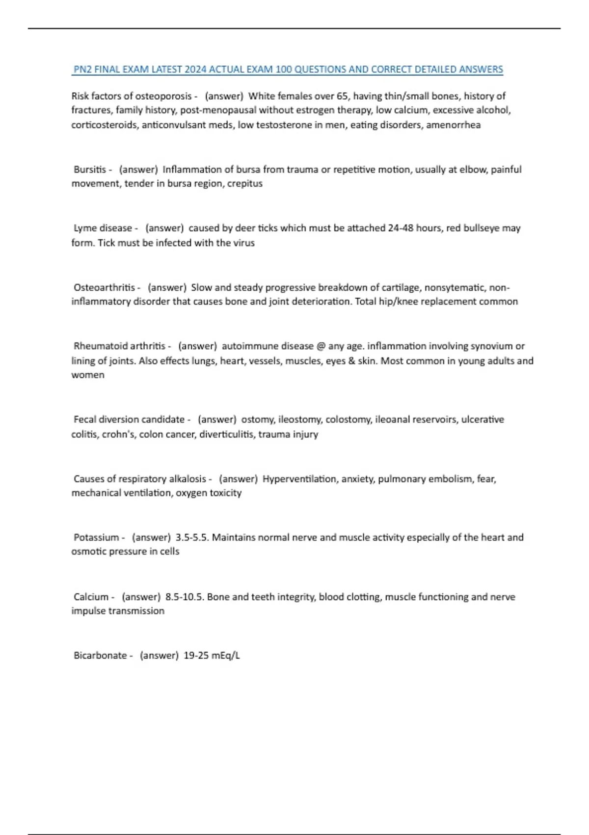 PN2 FINAL EXAM LATEST 2024 ACTUAL EXAM 100 QUESTIONS AND CORRECT DETAILED ANSWERS