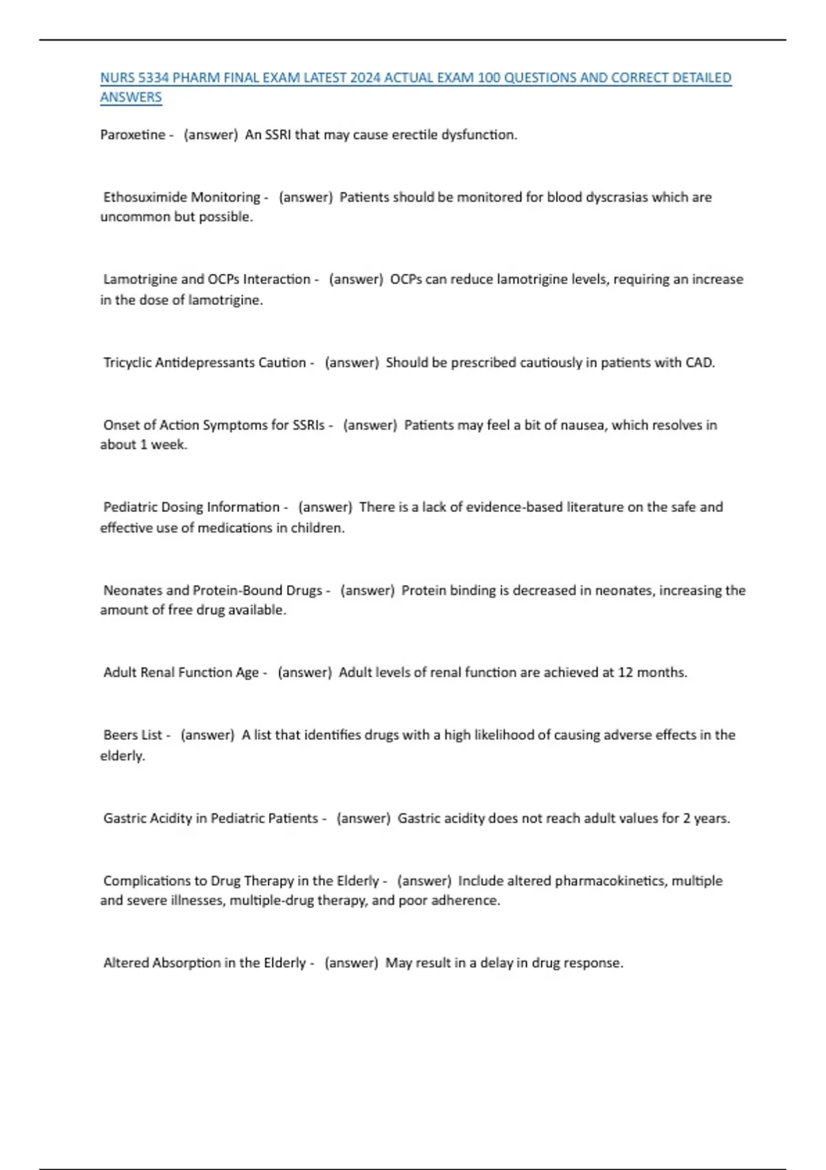NURS 5334 PHARM FINAL EXAM LATEST 2024 ACTUAL EXAM 100 QUESTIONS AND CORRECT DETAILED ANSWERS