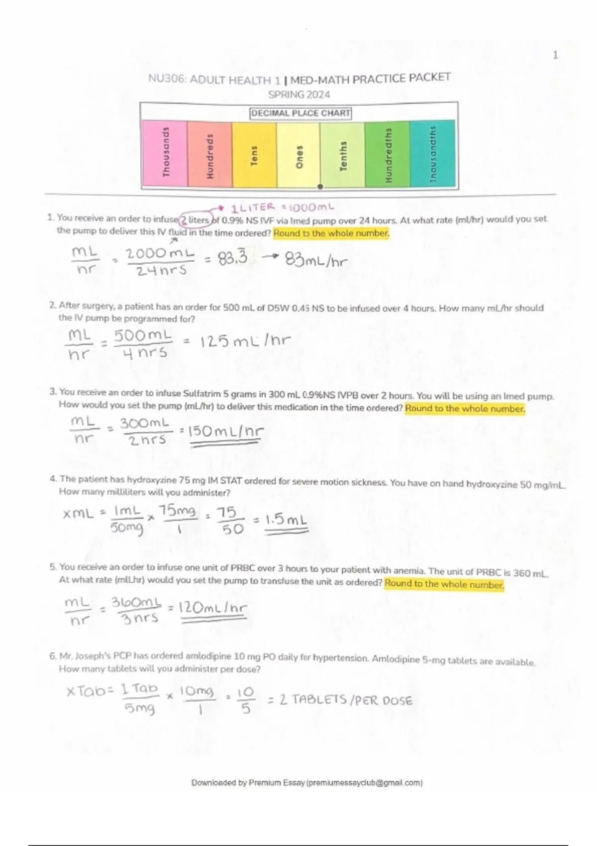 Master your Medication Math (Med Math) skills with this Practice Exam and Solution Guide. This comprehensive resource includes accurate practice questions with step-by-step solutions to help you succeed in dosage calculations, conversions, IV flow rates, oral medication administration, and safe drug dosage computations. Ideal for nursing students, healthcare professionals, and exam preparation, this guide simplifies complex calculations and ensures accuracy through clear explanations and worked examples. Whether you are preparing for a nursing school exam, certification test, or clinical practice, this resource will boost your confidence and accuracy in medication administration. Download now and get the ultimate Med Math practice tool to pass your exams and improve your medication calculation skills.