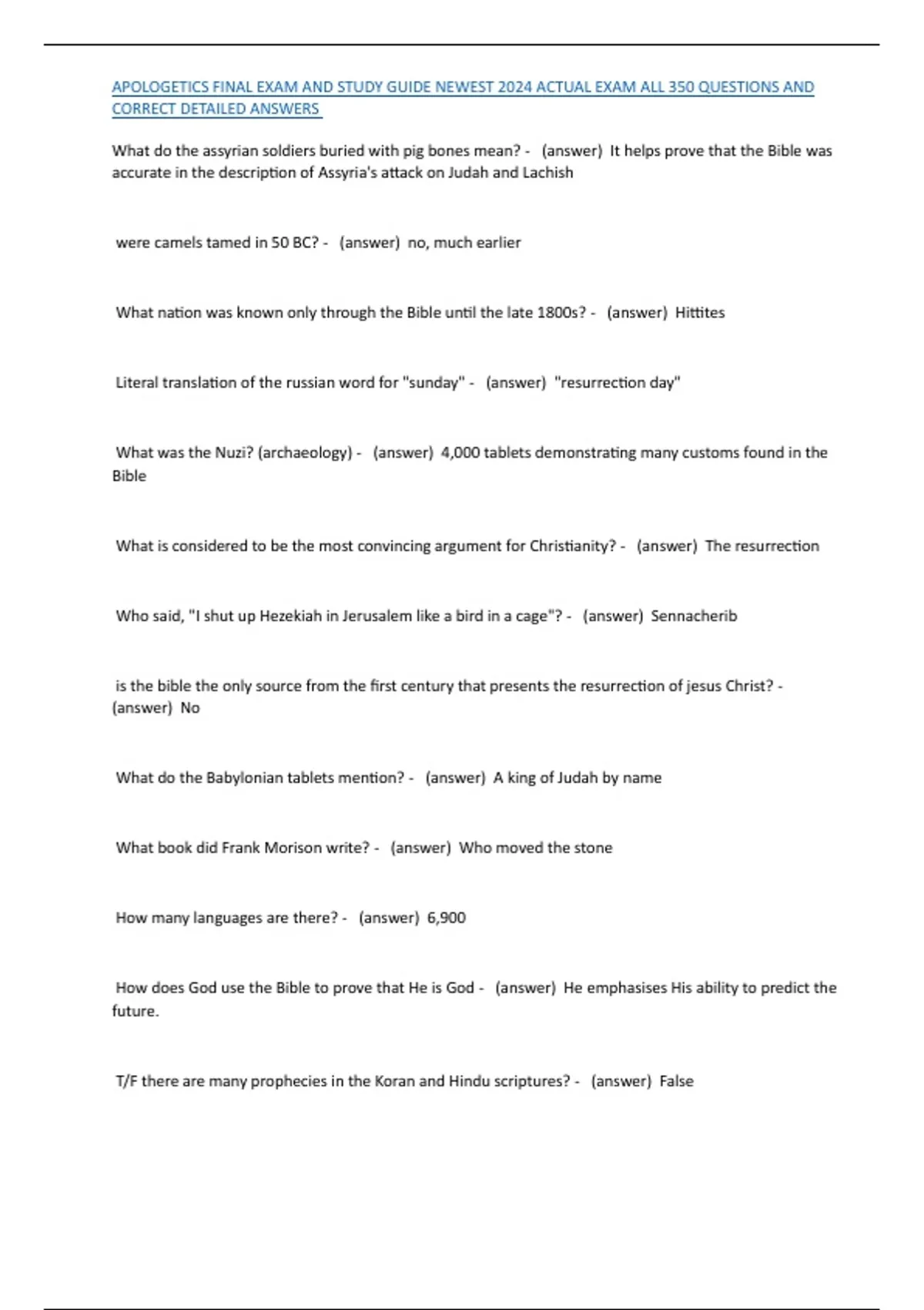 APOLOGETICS FINAL EXAM AND STUDY GUIDE NEWEST 2024 ACTUAL EXAM ALL 350 QUESTIONS AND