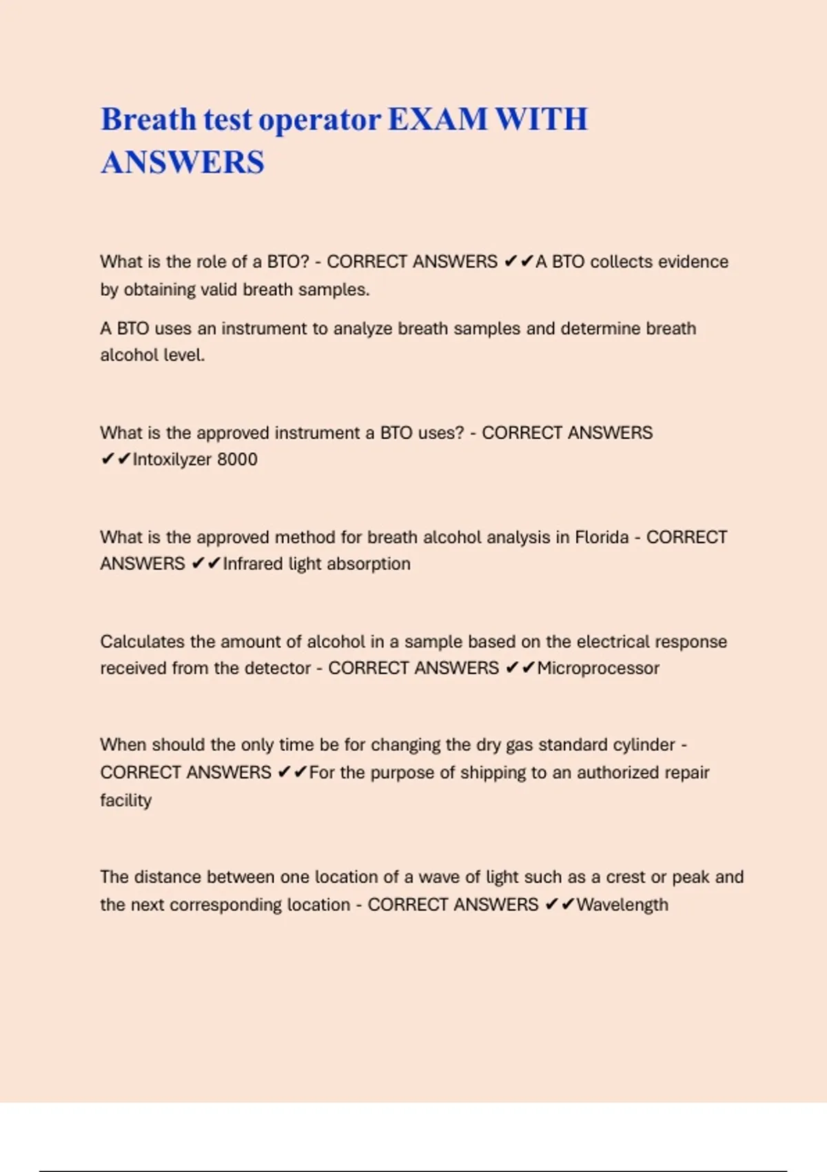 Breath test operator EXAM WITH ANSWERS