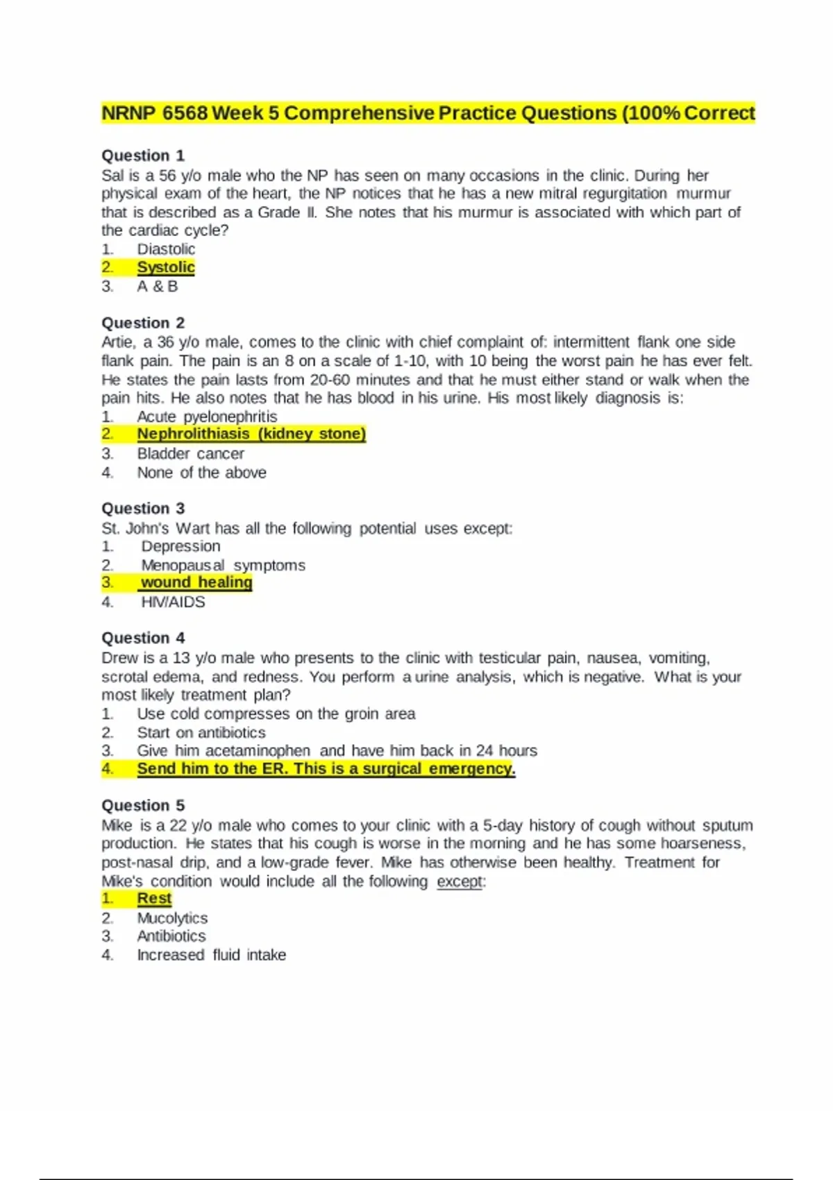 TEST BANK FOR NRNP 6568 Week 5 Comprehensive Practice Questions (100% Correct)