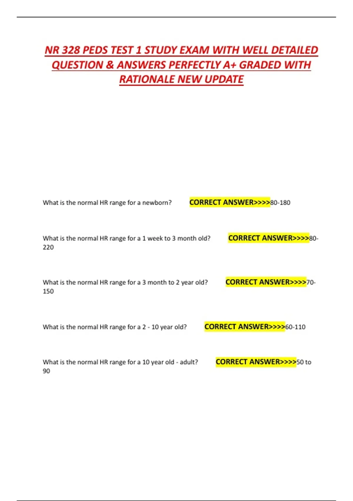 NR 328 PEDS TEST 1 STUDY EXAM WITH WELL DETAILED