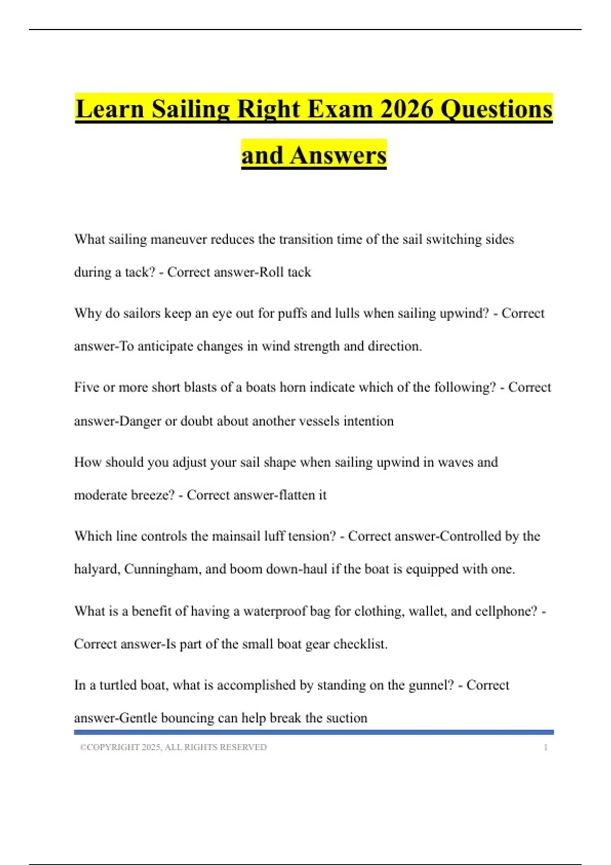 Learn Sailing Right Exam 2026 Questions and Answers