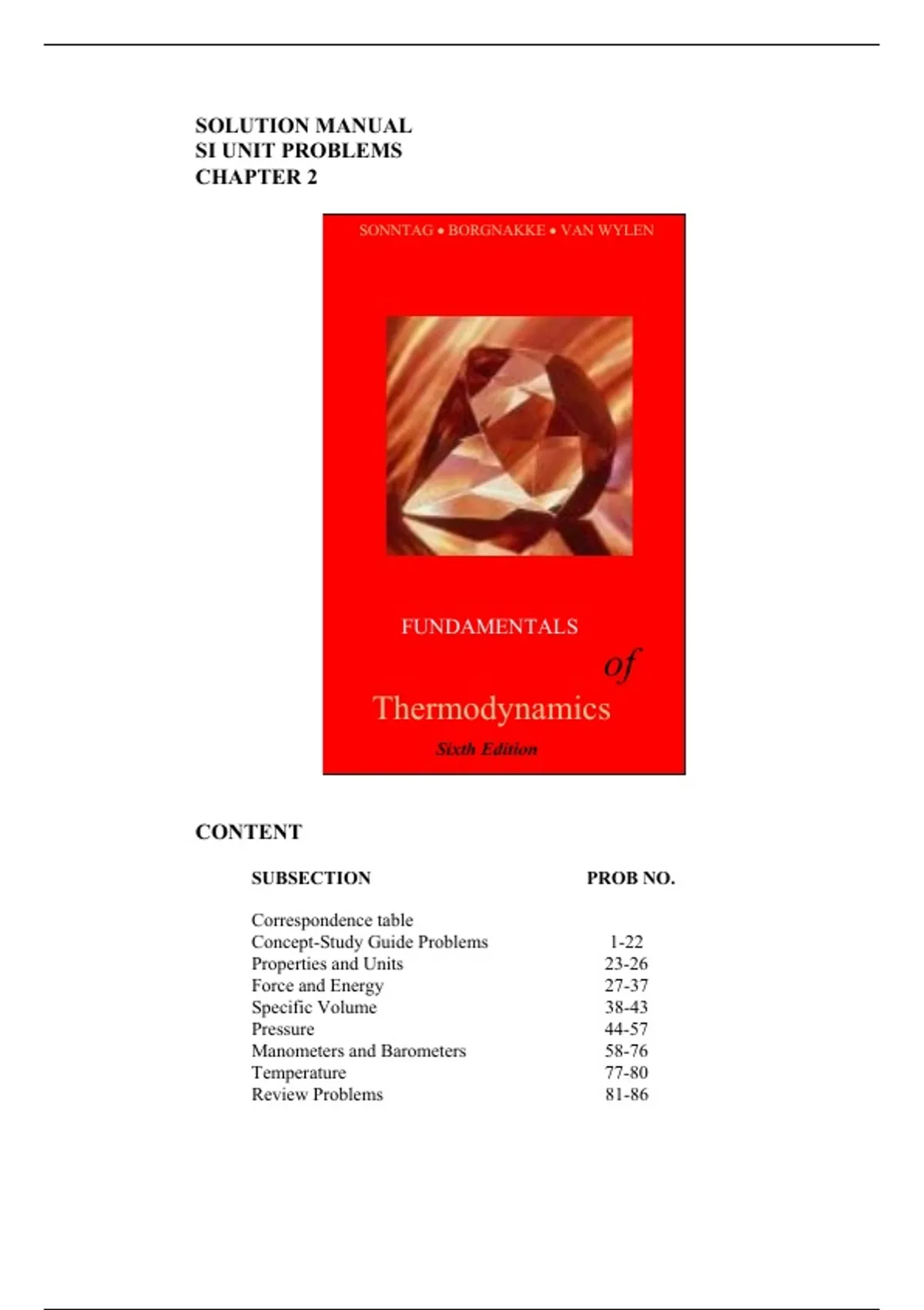 CHAPTER 2 6th edition Sonntag/Borgnakke/Wylen