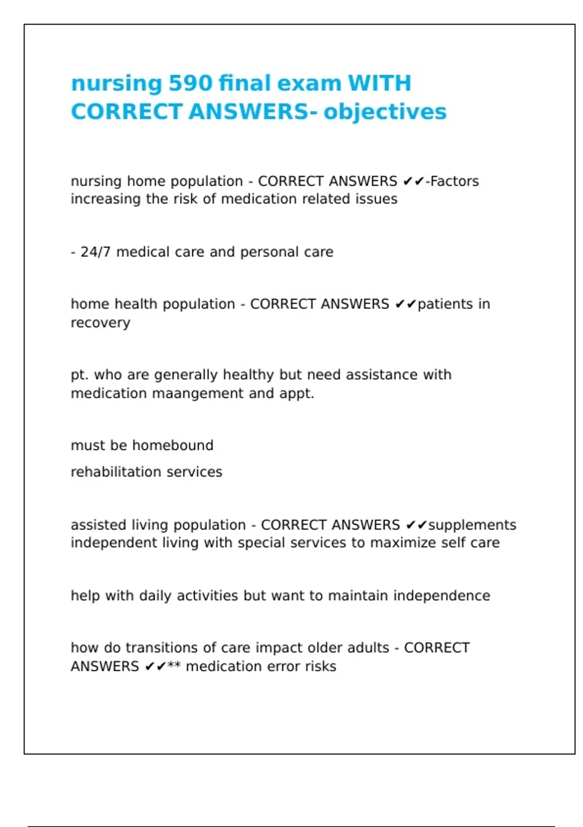 nursing 590 final exam WITH CORRECT ANSWERS- objectives