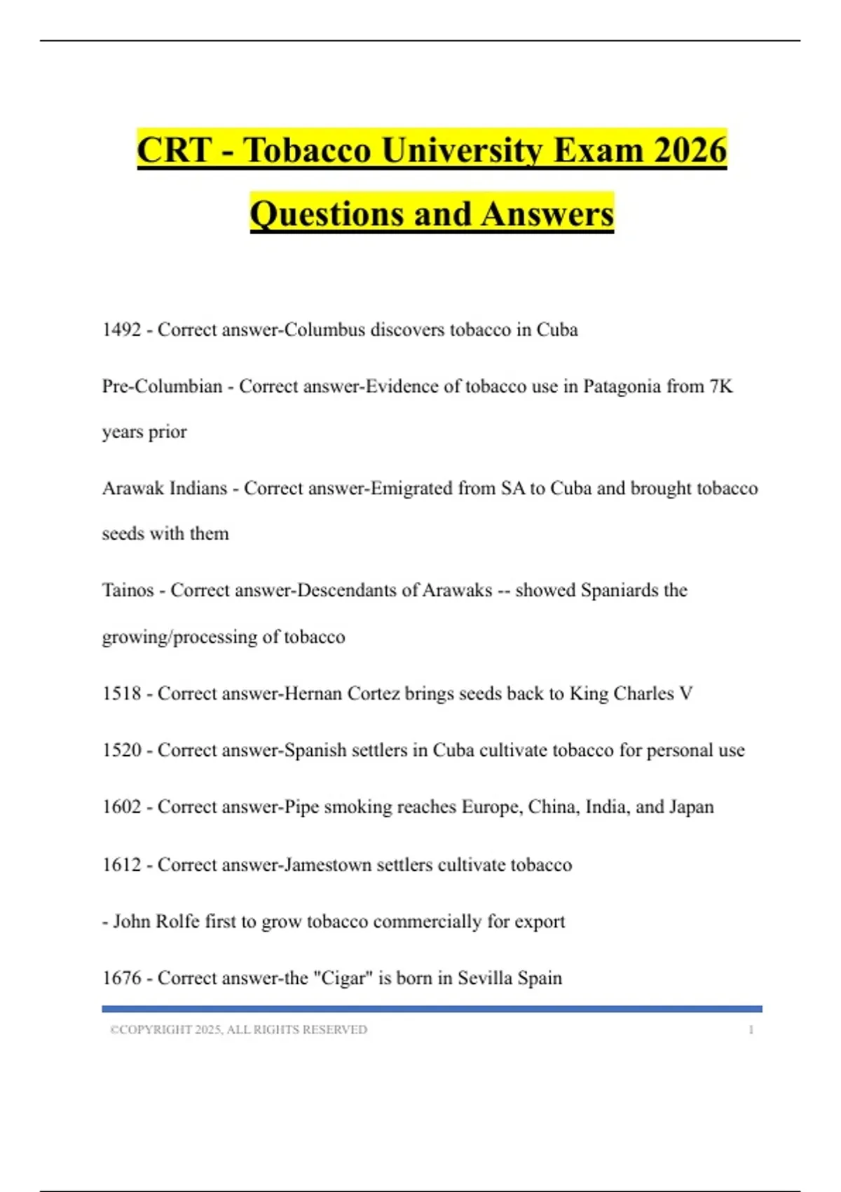 CRT - Tobacco University Exam 2026