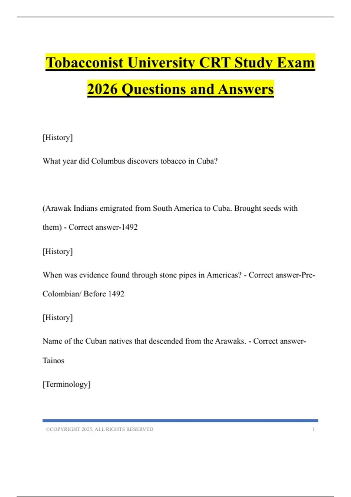 Tobacconist University CRT Study Exam 2026 Questions and Answers