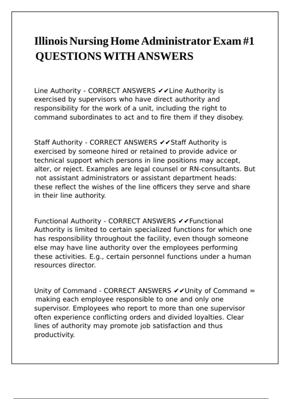 Functional Authority - CORRECT ANSWERS ✔✔Functional|\ |\ |\ |\ |\ |\