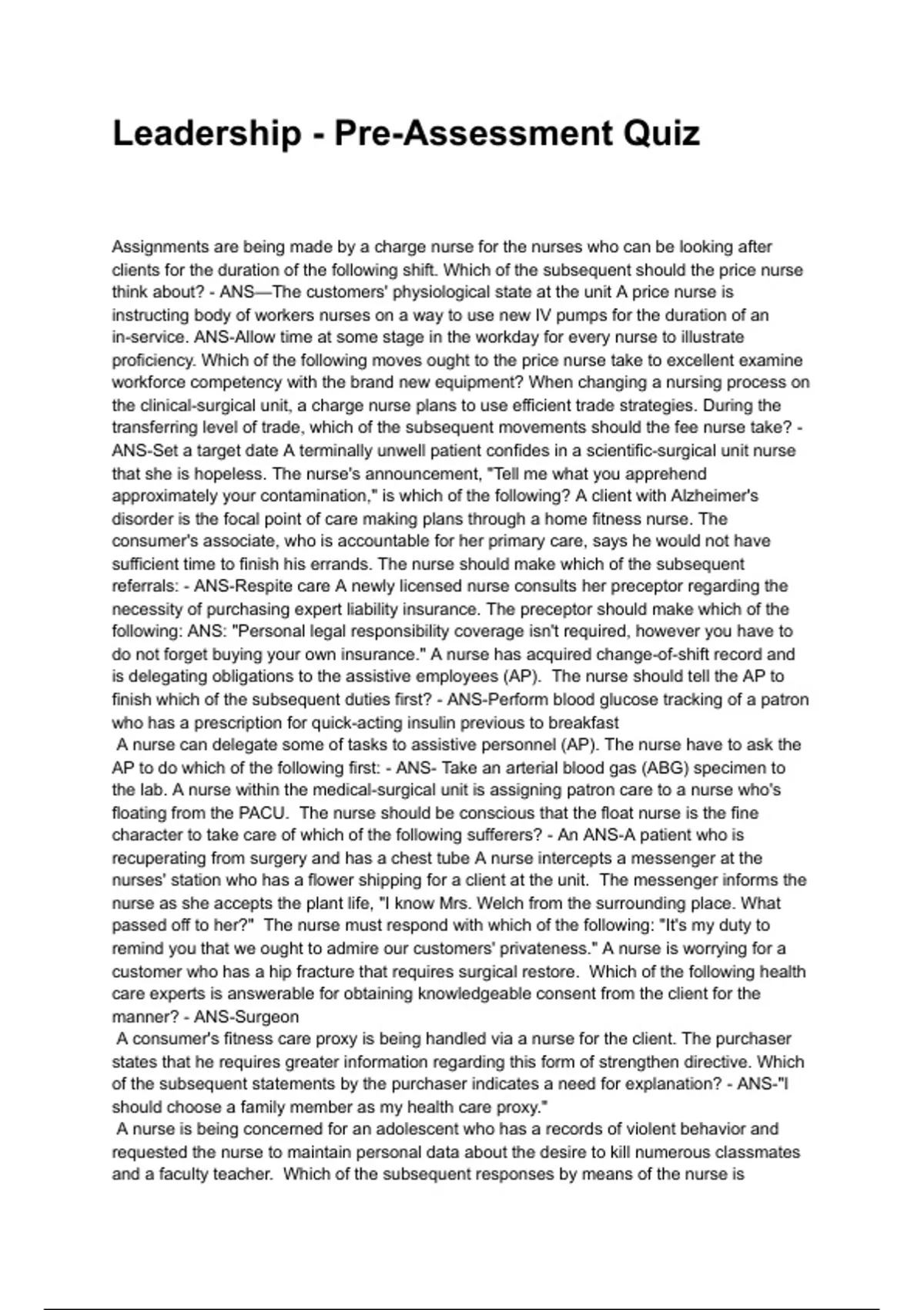 clients for the duration of the following shift. Which of the subsequent should the price nurse