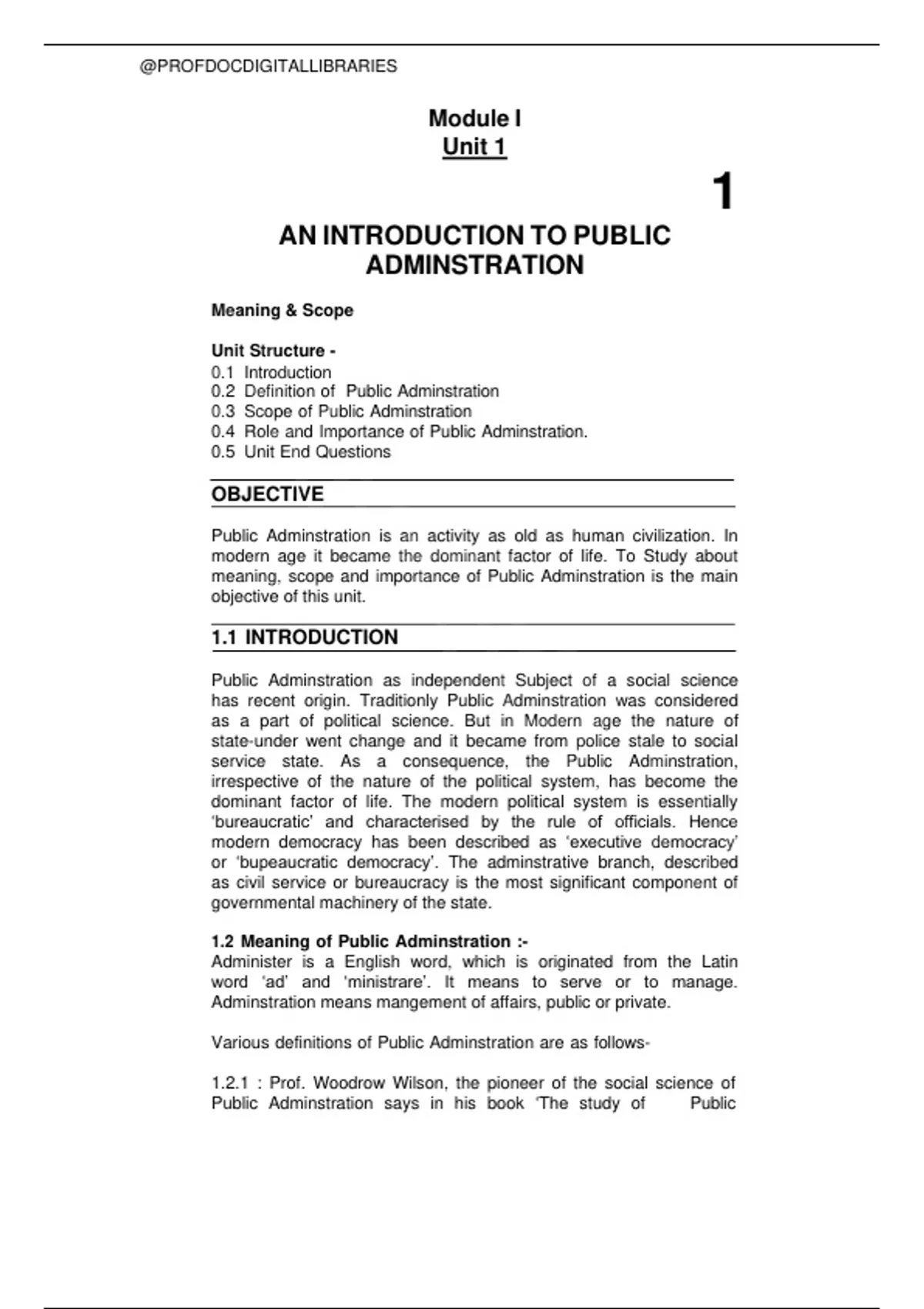 1.2.1 : Prof. Woodrow Wilson, the pioneer of the social science of