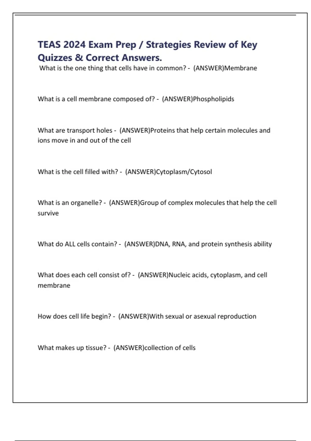 What does each cell consist of? - (ANSWER)Nucleic acids, cytoplasm, and cell