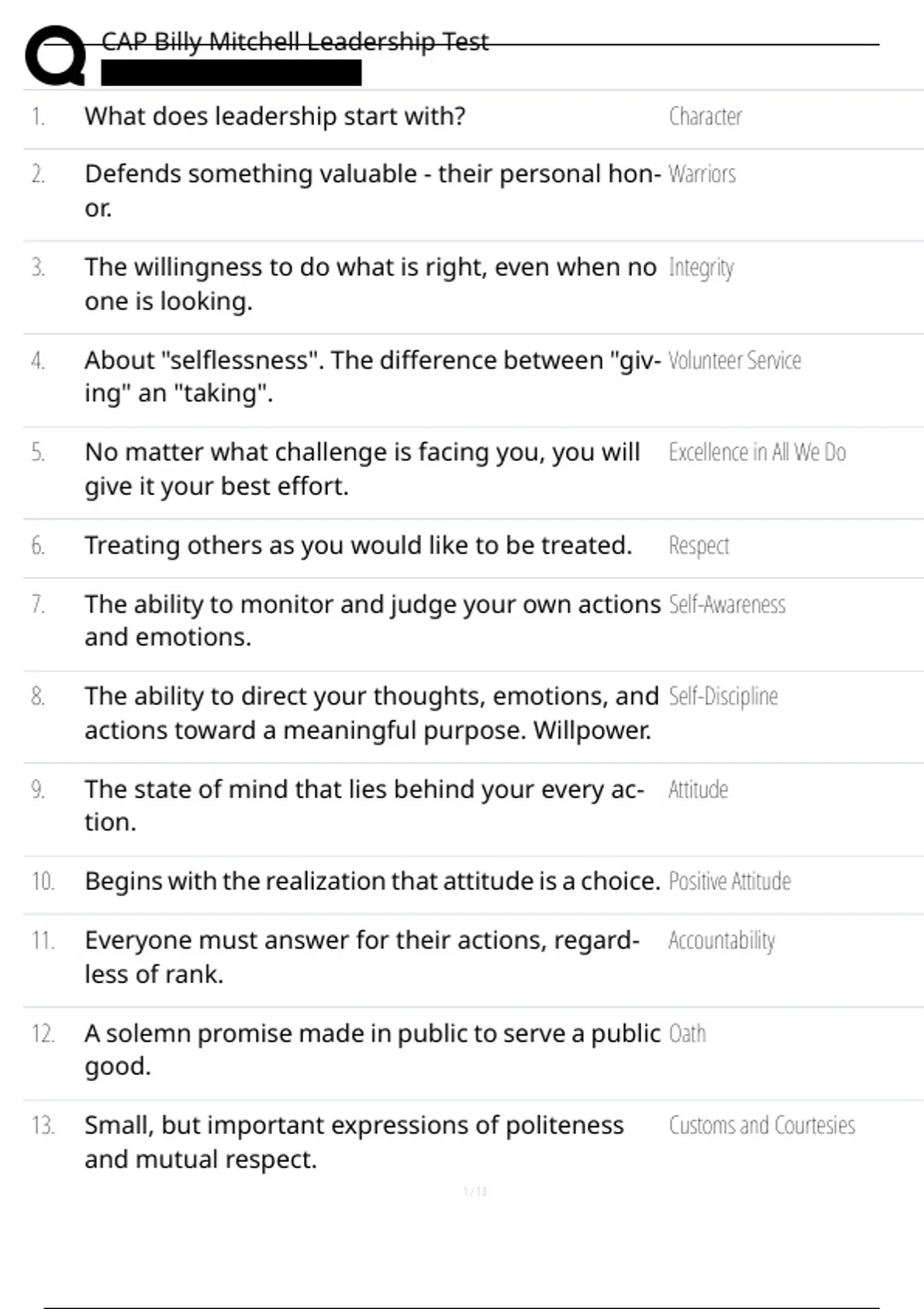 , CAP Billy Mitchell Leadership Test