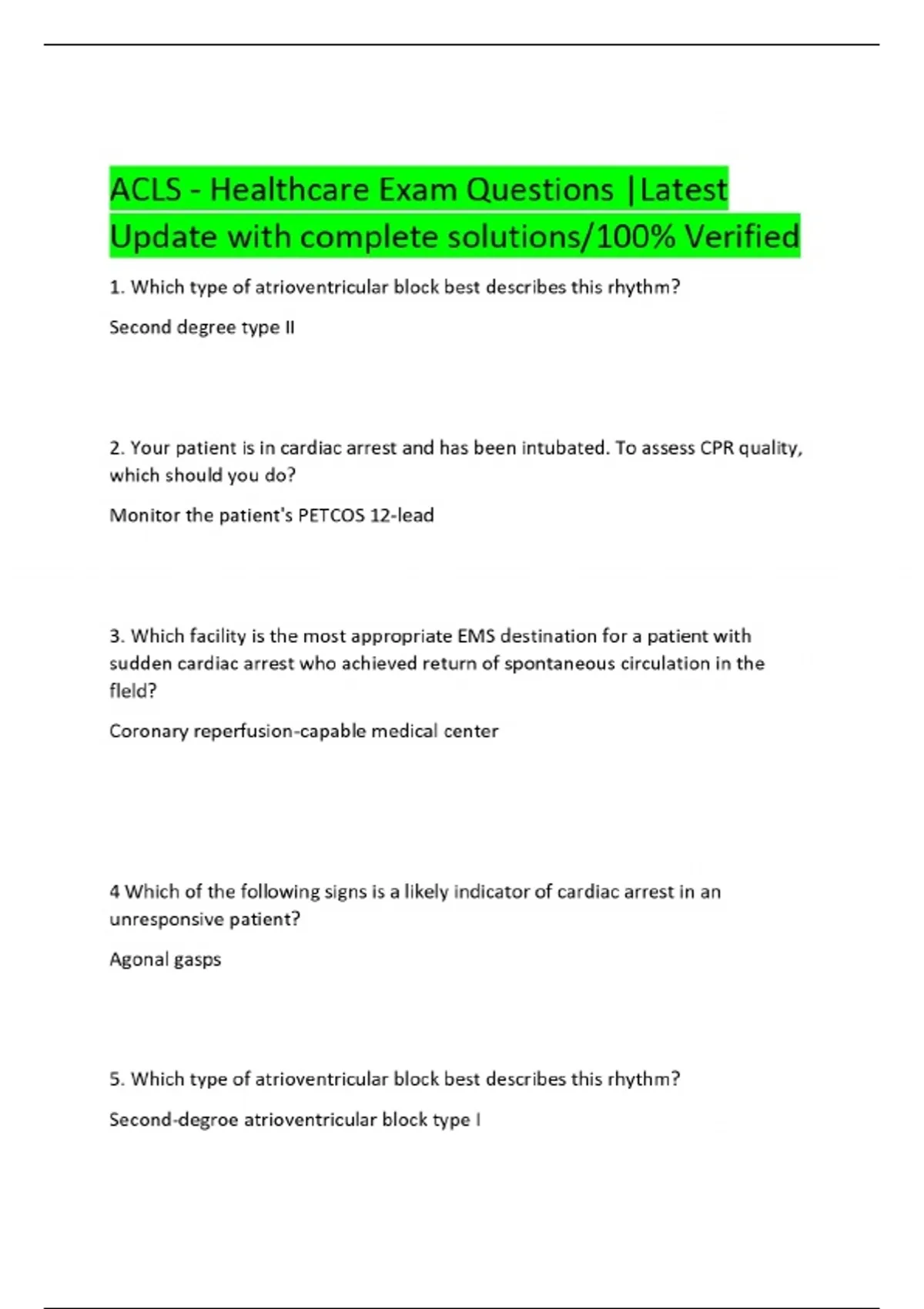 ACLS - Healthcare Exam Questions |Latest Update with complete solutions/100% Verified