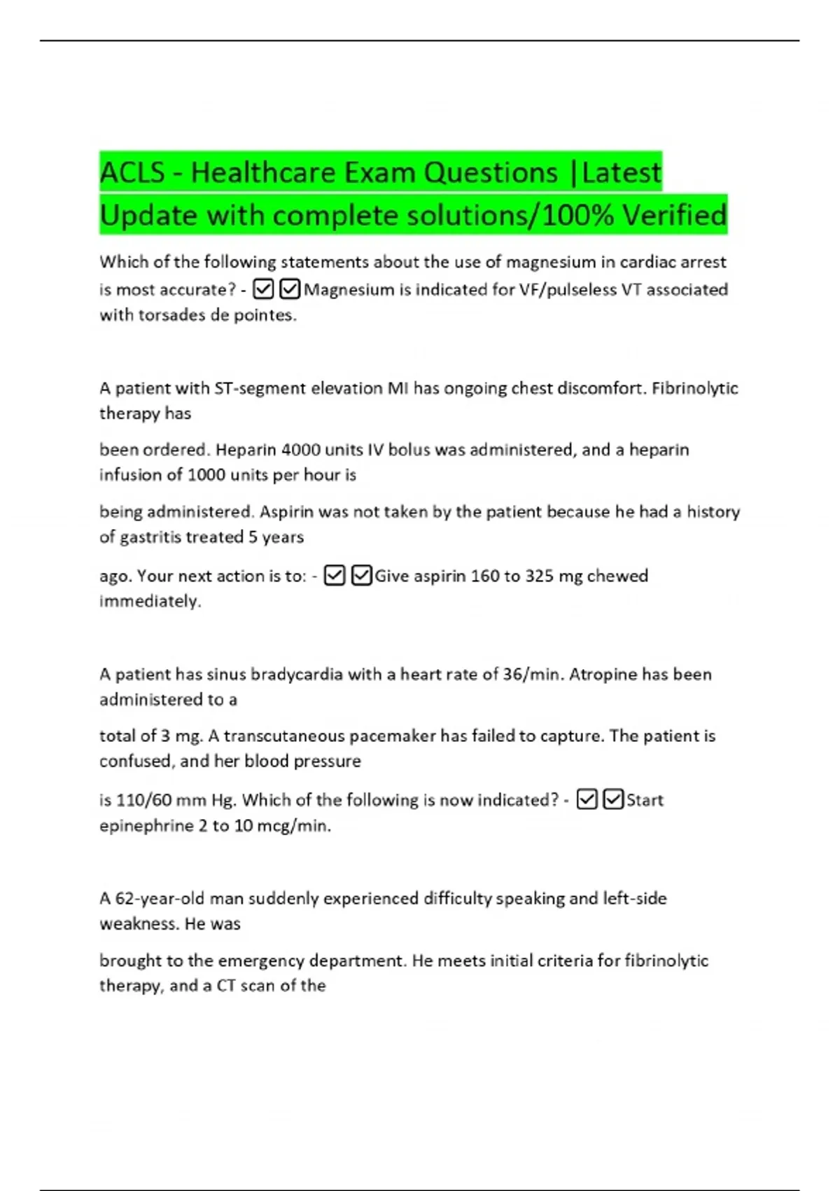 ACLS - Healthcare Exam Questions |Latest Update with complete solutions/100% Verified