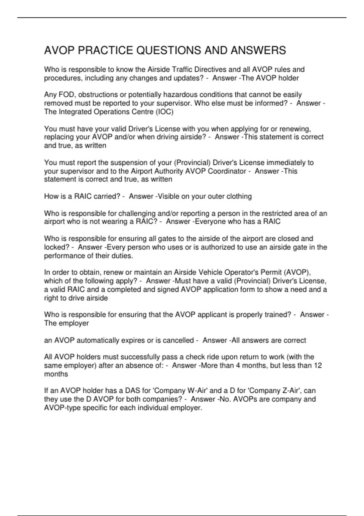 AVOP PRACTICE QUESTIONS AND ANSWERS
