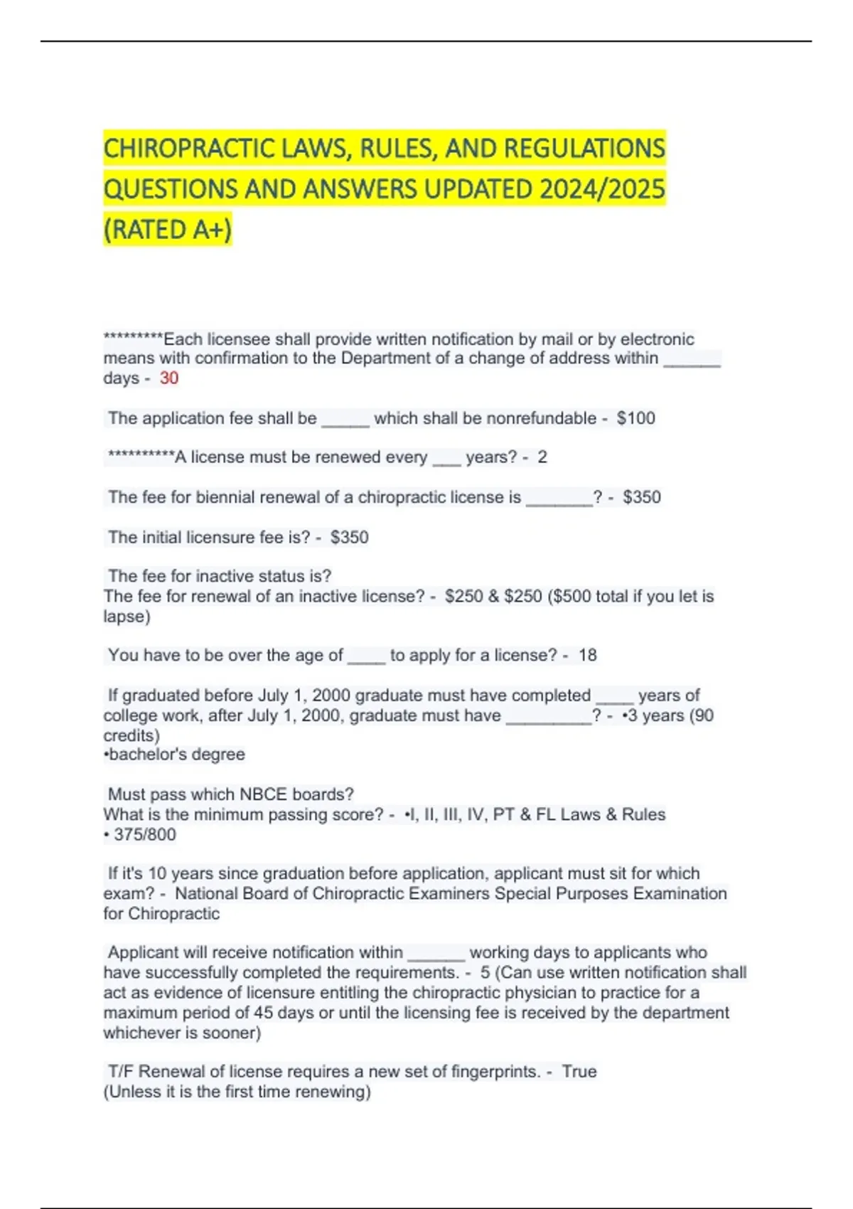 QUESTIONS AND ANSWERS UPDATED 2024/2025