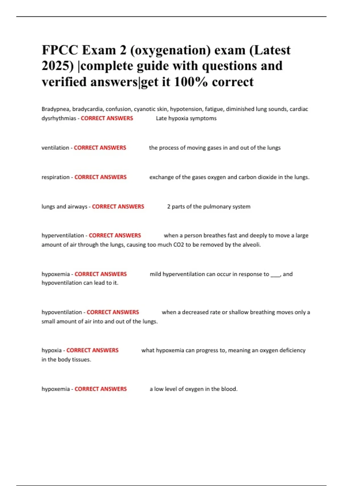 FPCC Exam 2 (oxygenation) exam (Latest 2025) |complete guide with questions and verified answers|get it 100% correct