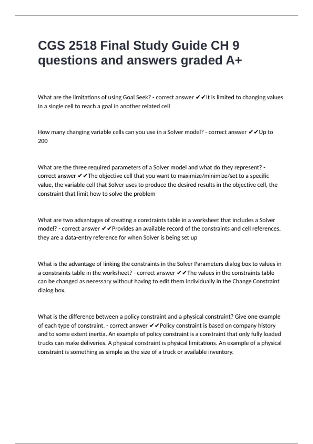 How many changing variable cells can you use in a Solver model? - correct answer ✔✔Up to